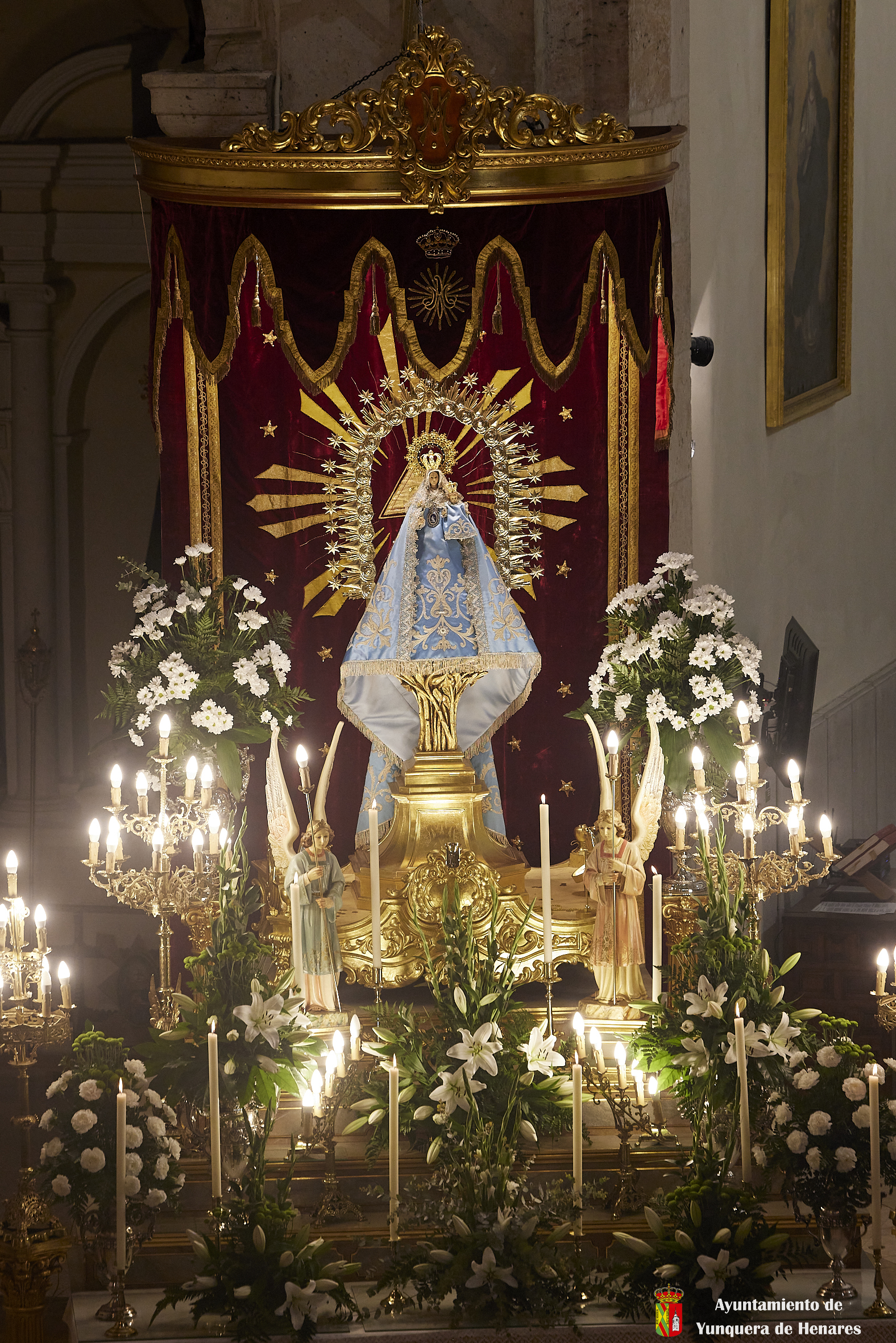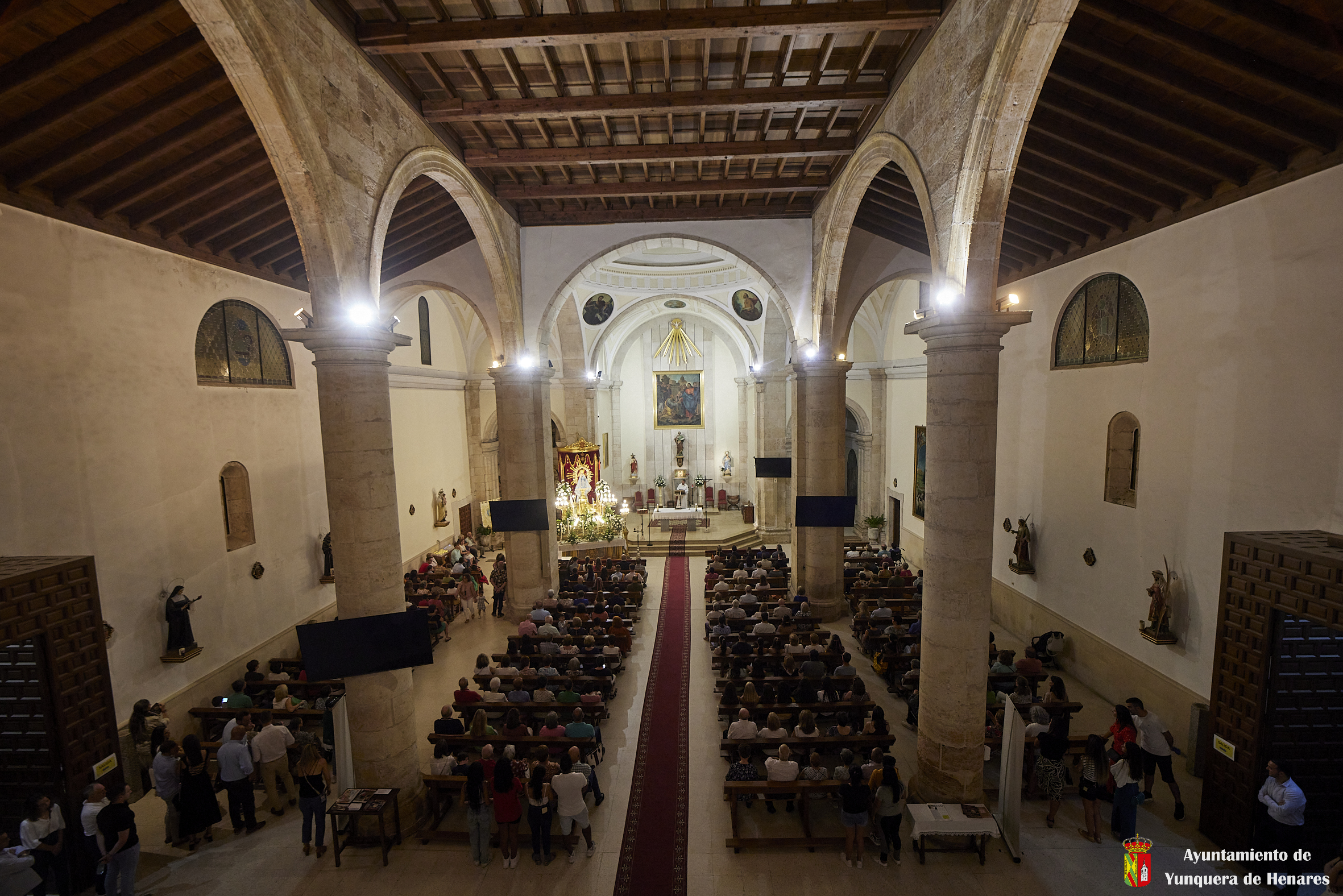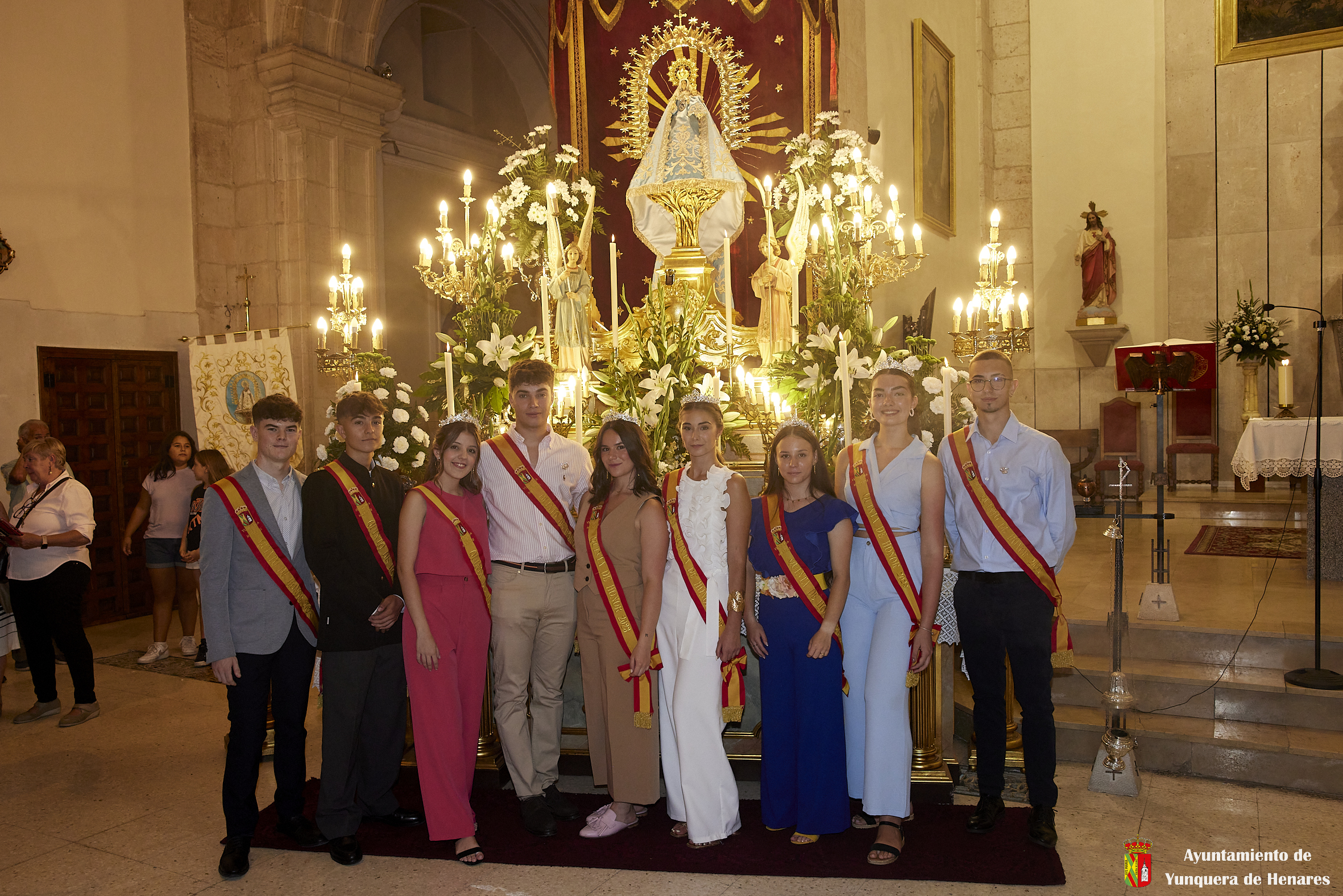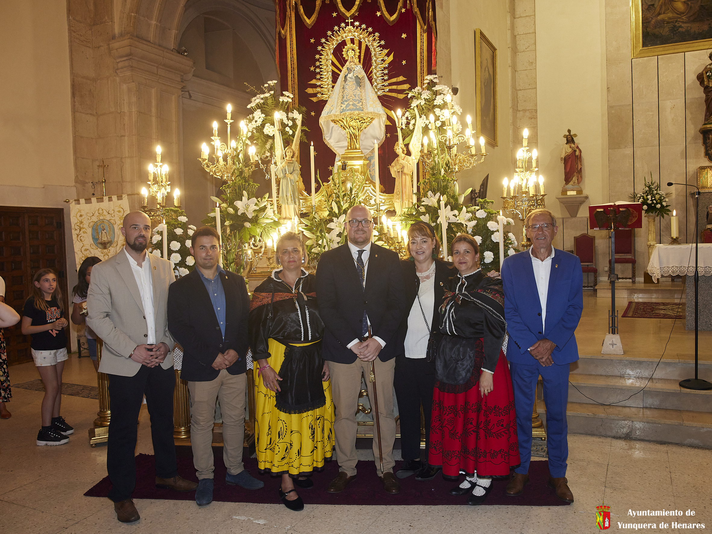 Tras ello, la marcha continuó hasta llegar al templo principal de Yunquera de Henares. Allí, tras la tradicional subasta y la entrada de la Virgen a la iglesia, celebraron el primer día de su Novena.
