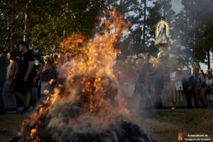 El recorrido, plagado de grandes hogueras que encendían y controlaban los jóvenes de la localidad, continuaba al paso que marcaba la Banda de Tambores y Cornetas de La Soledad, realizando las paradas que exigía la liturgia.