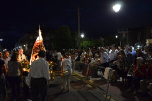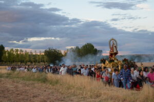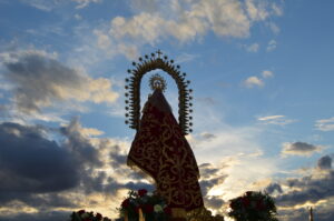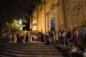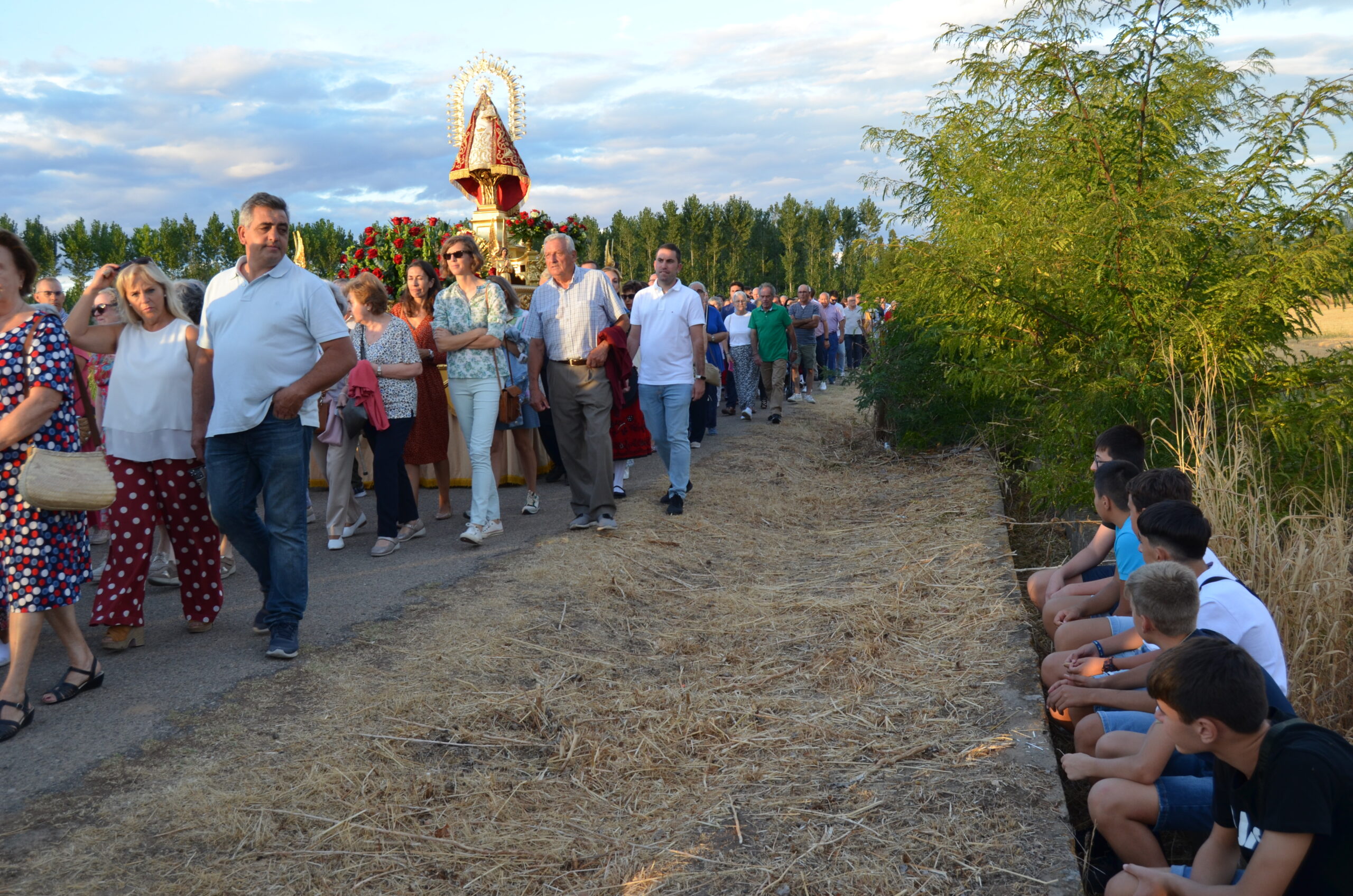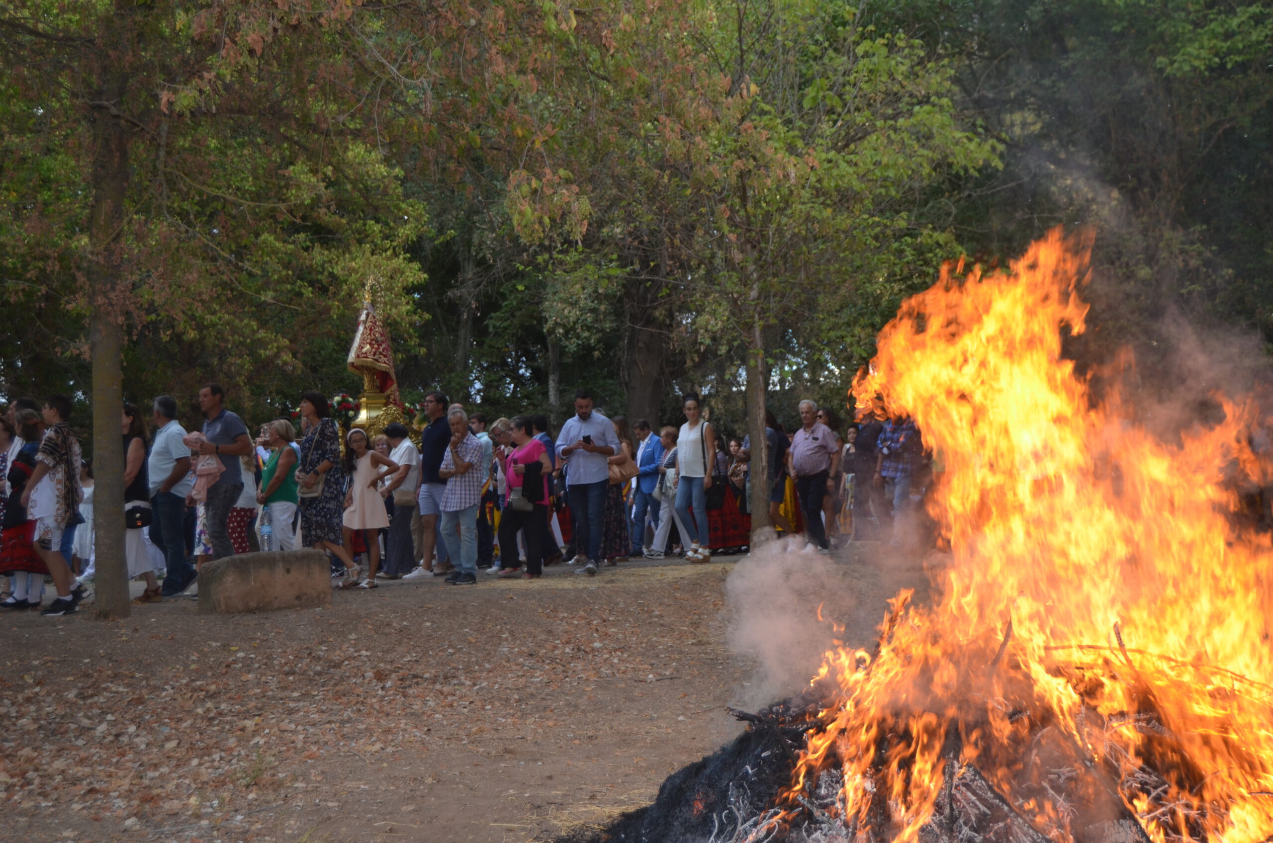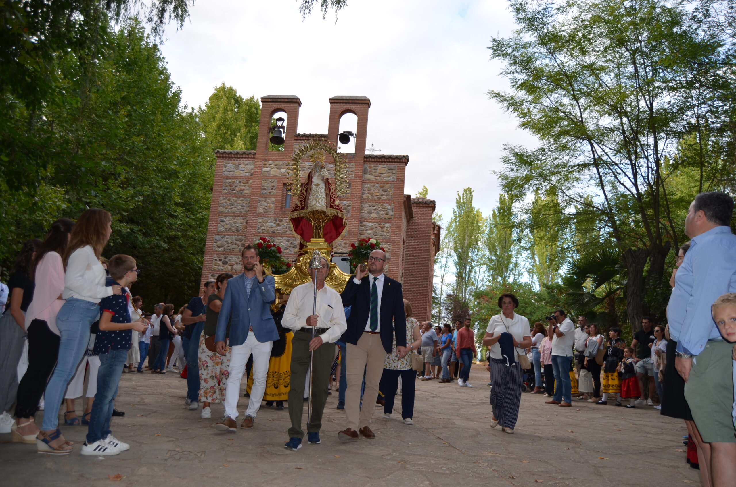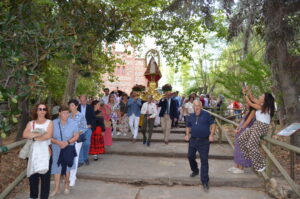 Decenas de personas se arremolinabas alrededor de su santuario cuando salía de él portada por los miembros de la Corporación Municipal, y enfilaba la escalinata que comenzaban el camino de vuelta a casa.
