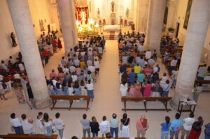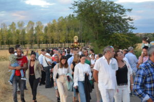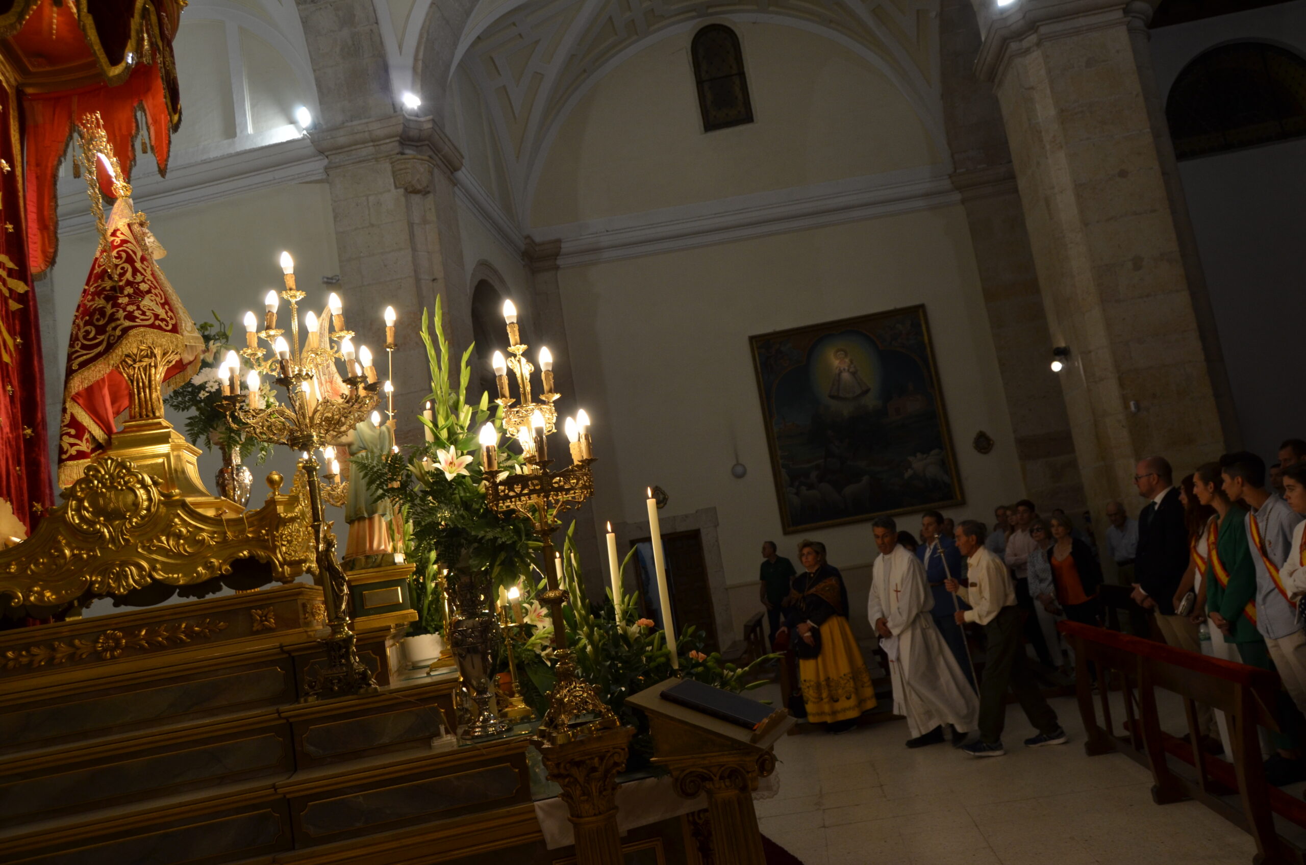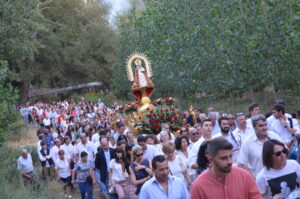 Tras ello, la marcha continuó hasta llegar al templo principal de Yunquera de Henares. Allí, tras la tradicional subasta y la entrada de la Virgen a la iglesia, celebraron el primer día de su Novena.