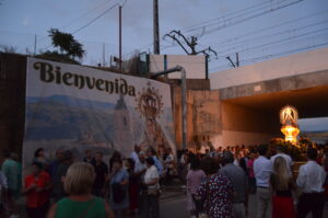 Tras el paso bajo el puente del tren y la calle La Caseta, se llegó a la plaza de La Amistad. Allí esperaban los mayores y enfermos, quien pudieron contemplarla del cerca cuando la imagen giró hacia ellos.