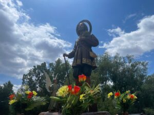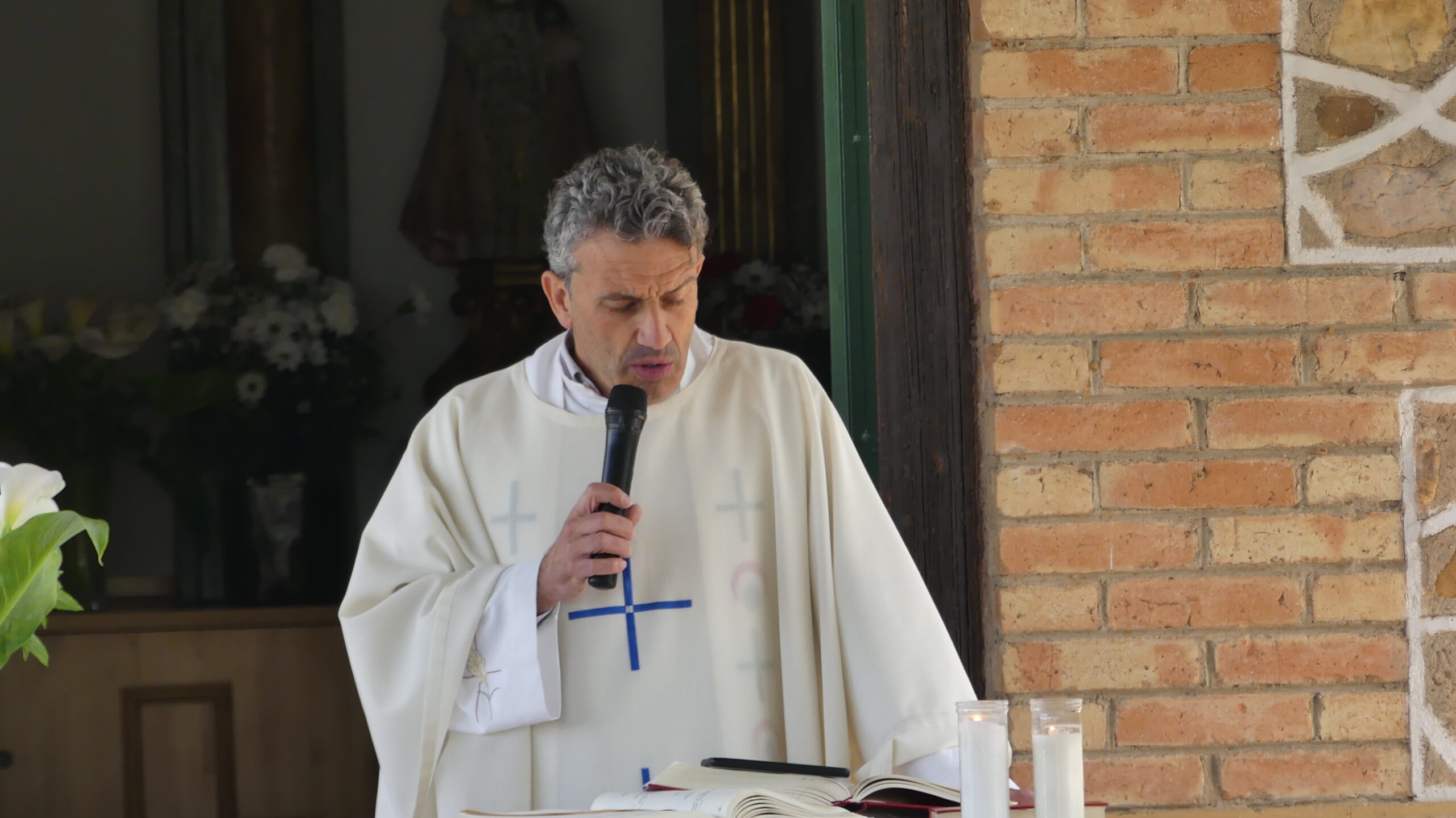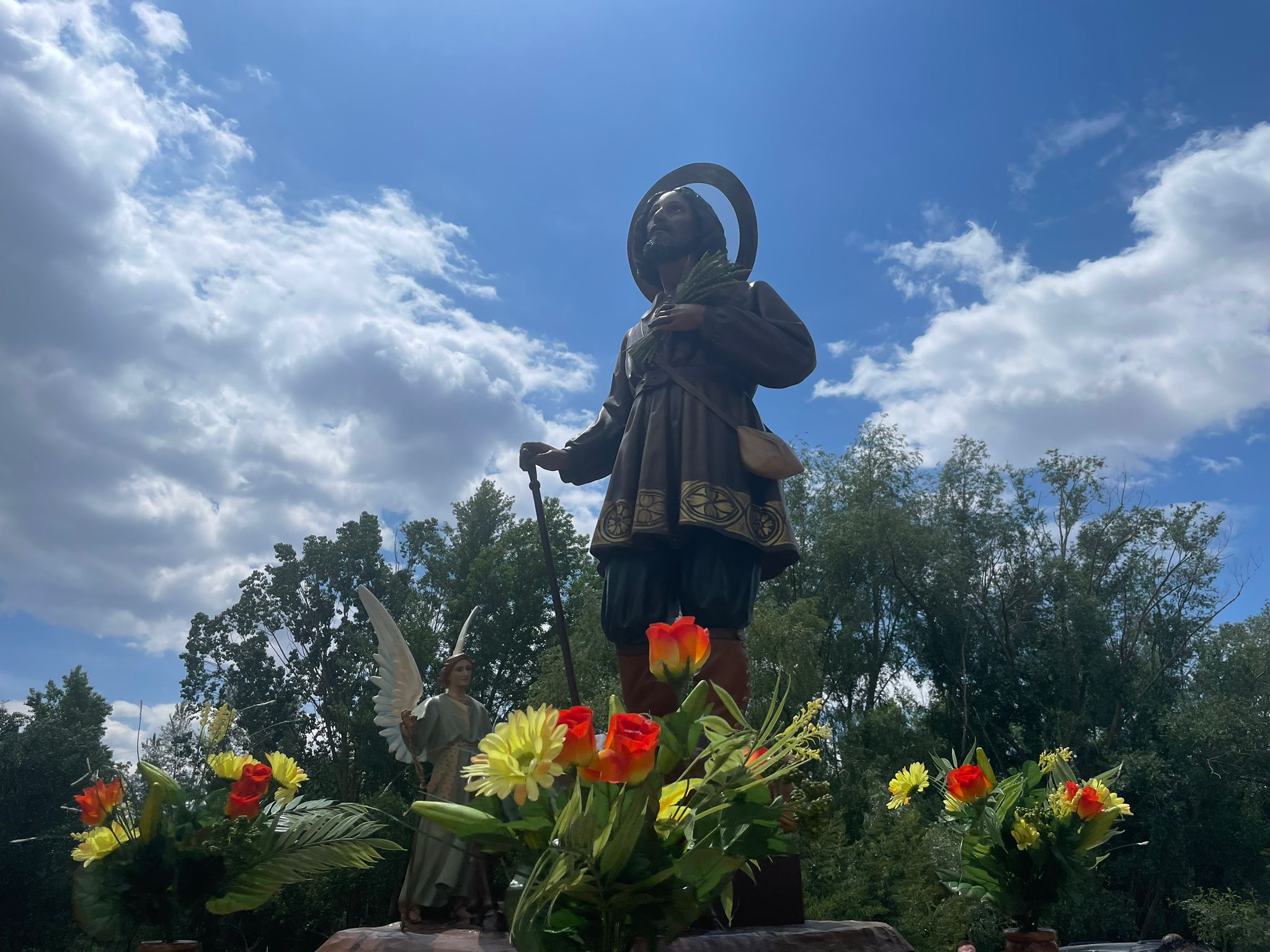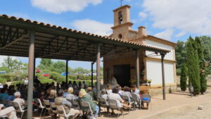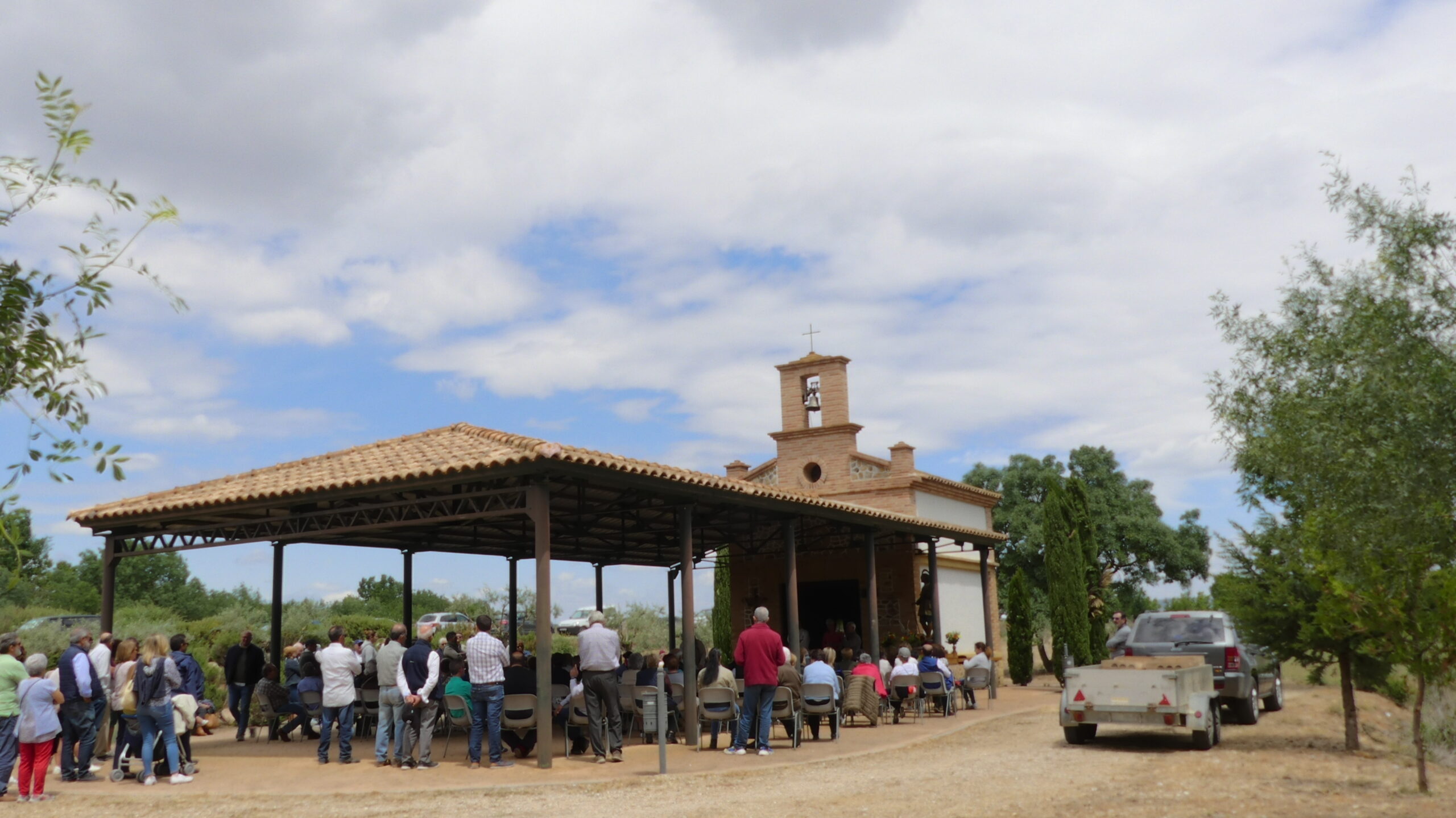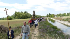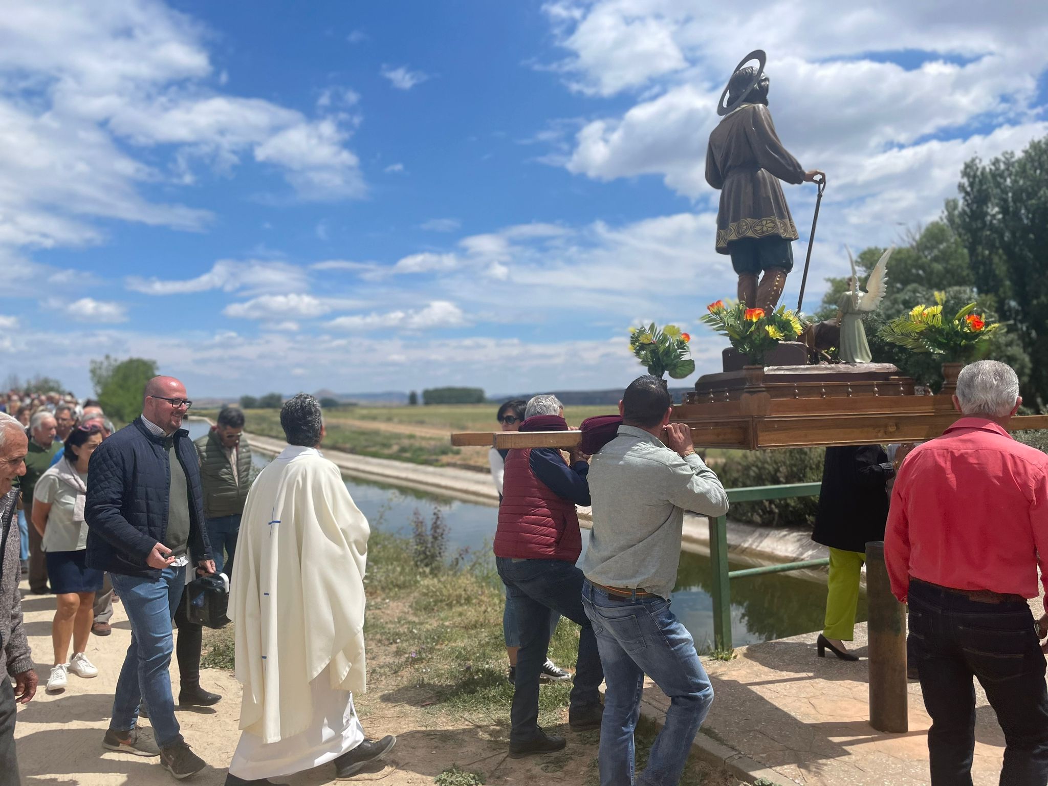 Seguidamente se ha sacado al santo en procesión cargado por los agricultores y vecinos por los alrededores de la ermita. En la confluencia de varias parcelas agrícolas, el párroco ha bendecido los campos y ha pedido agua para mejorar las cosechas del pueblo.