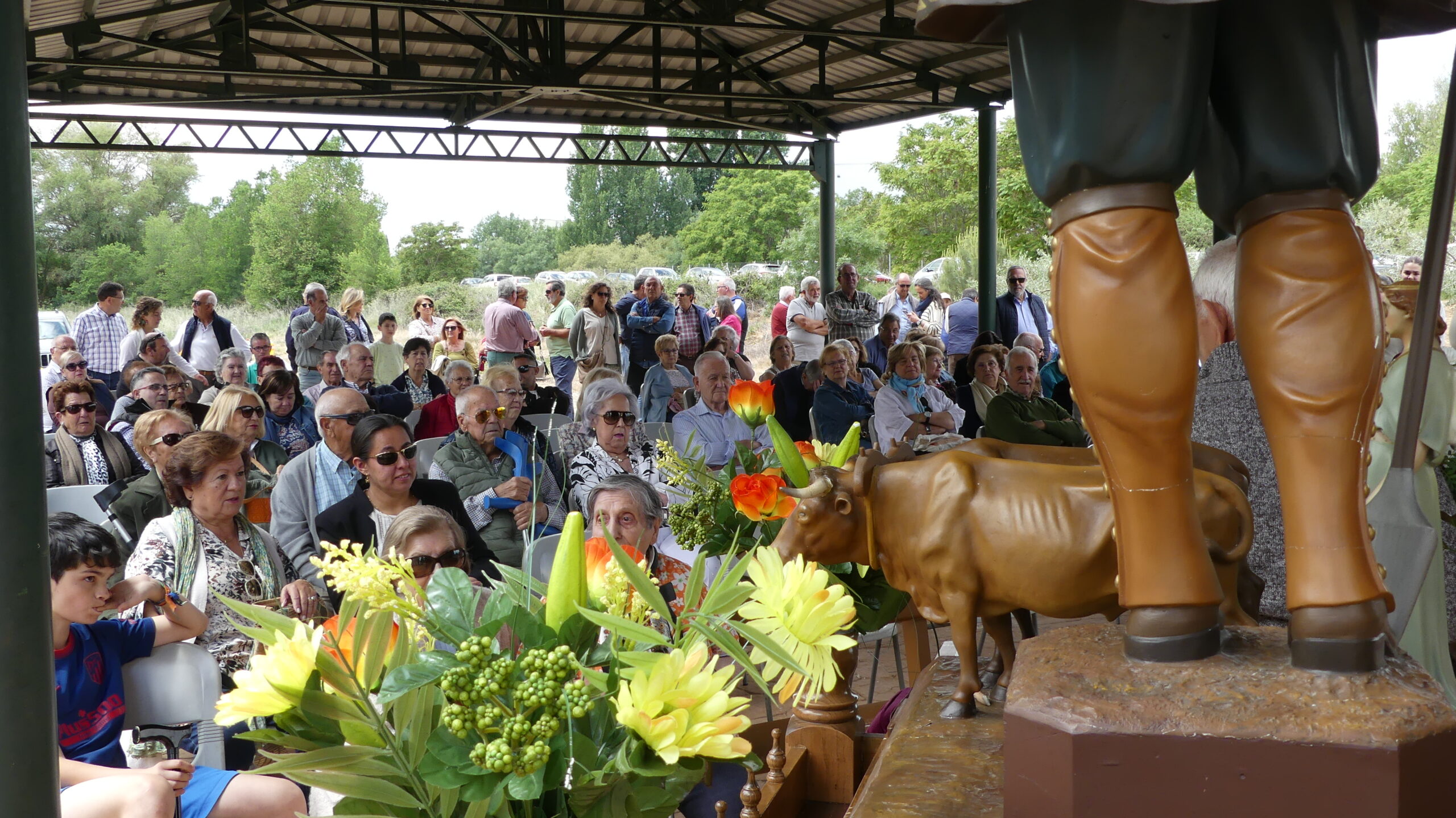 Como marca la tradición la ermita de San Isidro ha acogido la celebración de la Eucaristía a cargo del párroco José Benito. En ella se ha realizado la ofrenda de varios artículos agrícolas, como aperos, espárragos o incluso tierra de los campos yunqueranos.