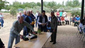 Una vez llegado el santo a la ermita, se han bendecido los chuscos y se han repartido a los vecinos. La festividad ha concluido con la invitación a un aperitivo por parte de los agricultores de Yunquera.