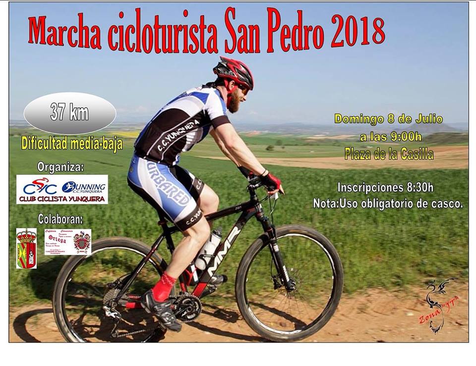 Como colofón a las fiestas de San Pedro-2018, el domingo 8 de julio, este último evento dentro del programa de fiestas de este año. Para todos los amantes de la bicicleta: «Marcha Cicloturista de San Pedro»; un recorrido apto para todos, con dificultad media-baja de aproximadamente 37 km, por los alrededore de Yunquera, el evento ya es tambien un clásico en las fiestas de San Pedro.