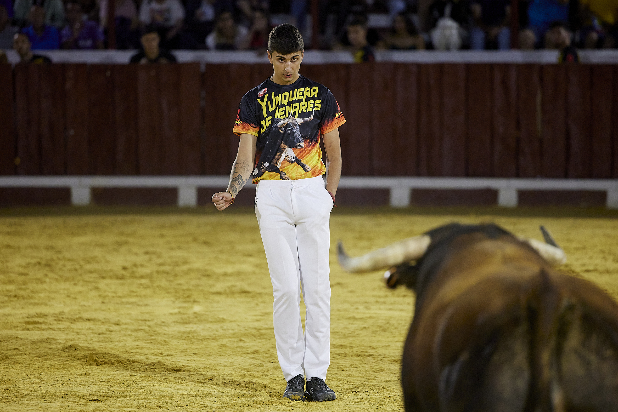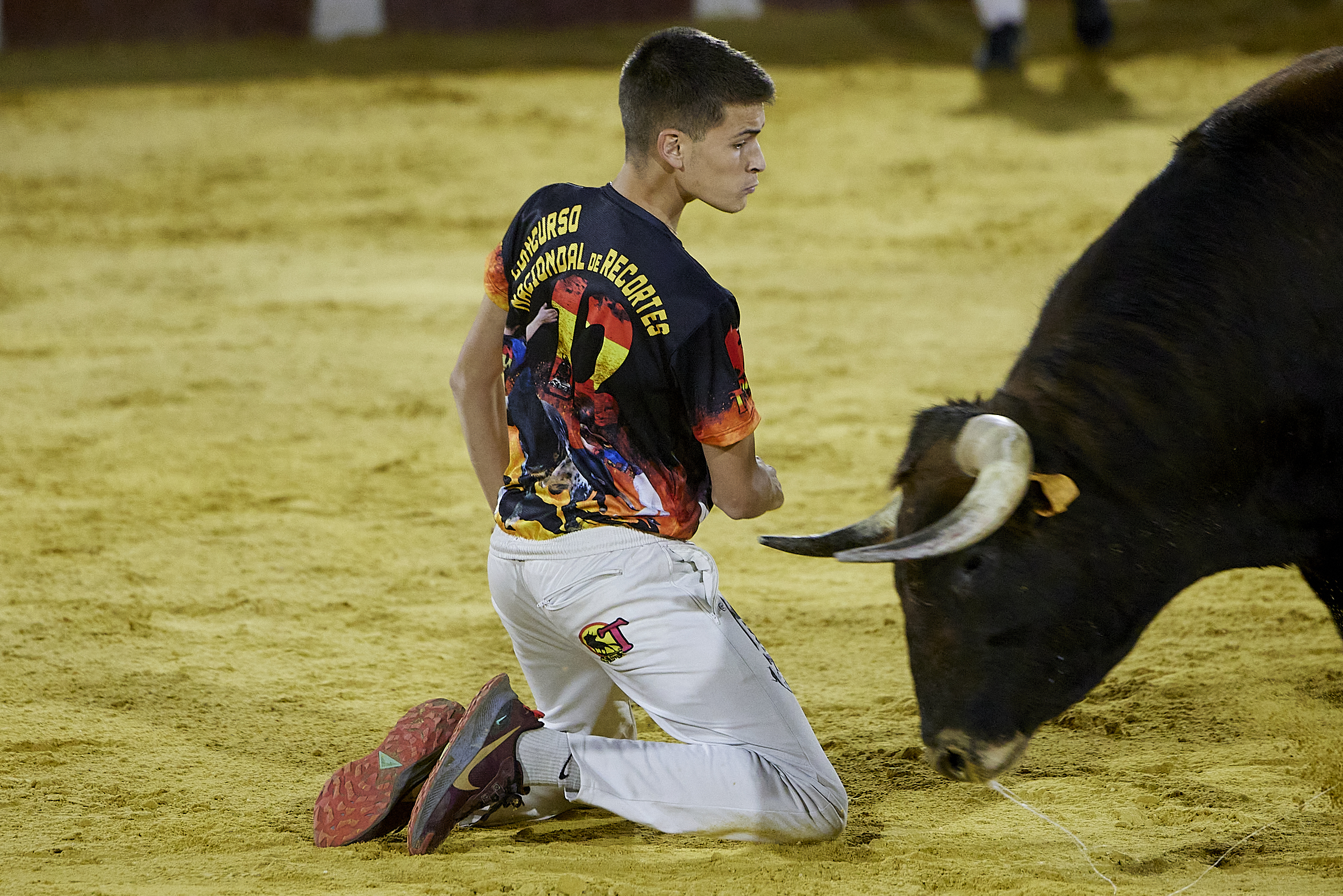 Los aficionados que han llenado la Plaza de Toros yunquerana han disfrutado de un sensacional concurso en el que han participado doce recortadores en el concurso nacional y cuatro en la exhibición de jóvenes promesas. Los dieciséis participantes han hecho vibrar a los aficionados con su quiebros, saltos, recortes, amagos y demás habilidades en cada una de sus intervenciones.