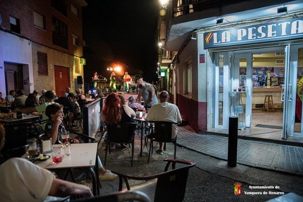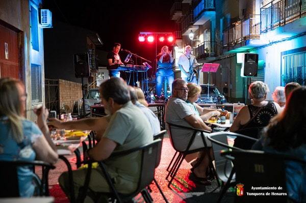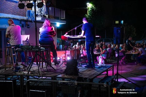 Un ambiente animado, con muchas familias, amigos y vecinos disfrutando de la música en directo.