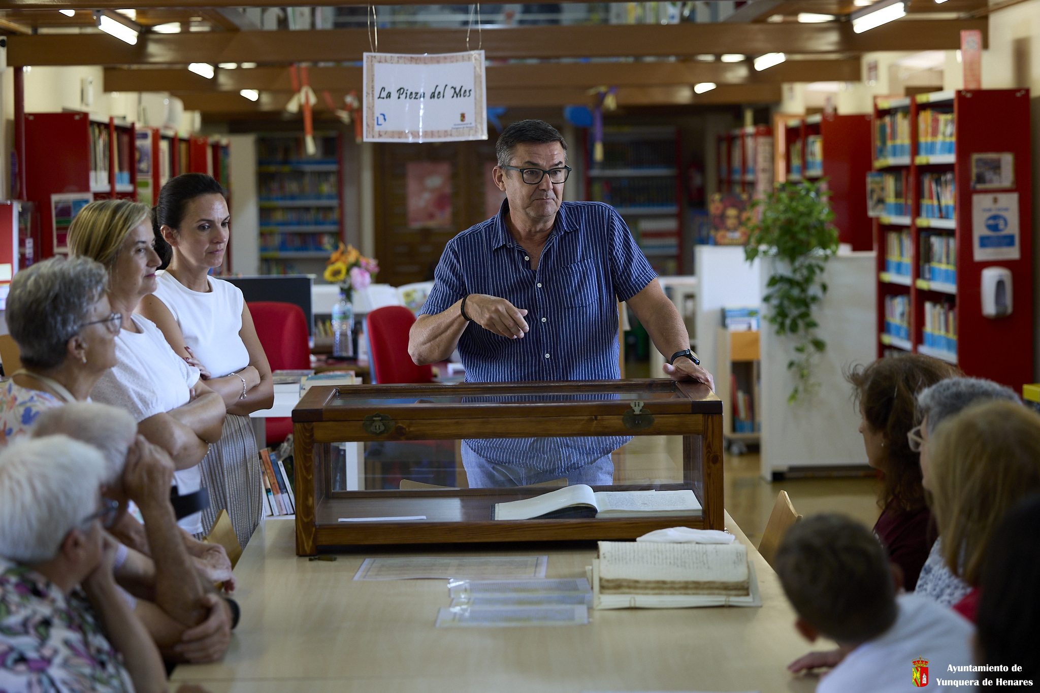 El archivero municipal, Jos茅 Antonio P茅rez, ha explicado a los asistentes los documentos expuestos en la Pieza del mes, siendo el m谩s destacado el Voto a Ntra. Sra. de la de la Granja de 1599, recogido en un libro de acuerdos del Concejo de Yunquera de Henares de 1600 a 1660.