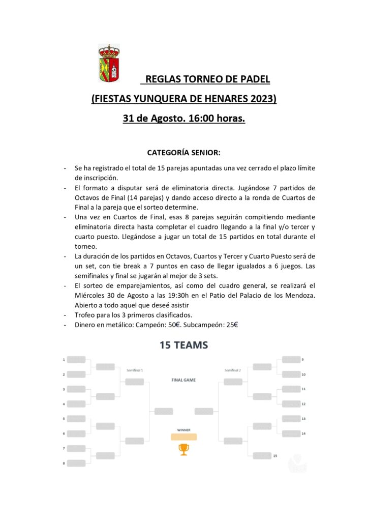 Reglas torneo padel 2023