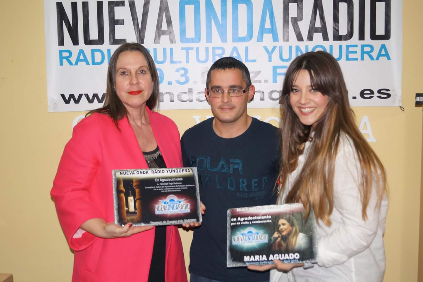 La emisora de radio NUEVA ONDA RADIO YUNQUERA cumple estos días siete años de andadura. Por este motivo, han venido realizando una serie de programas especiales, que culminaron con un programa estrella el pasado jueves día 5 de abril, pués contó con la presencia de la cantante talaverana María Aguado, la cuál nos deleitó además de con su presencia y su belleza, con su voz en directo. El director de la emisora Juan Carlos Ramirez, le hizo una larga entrevista, haciendo un repaso de su vida artística, y como deciamos, consiguió que la artista cantara dos temas en directo de su último albun.