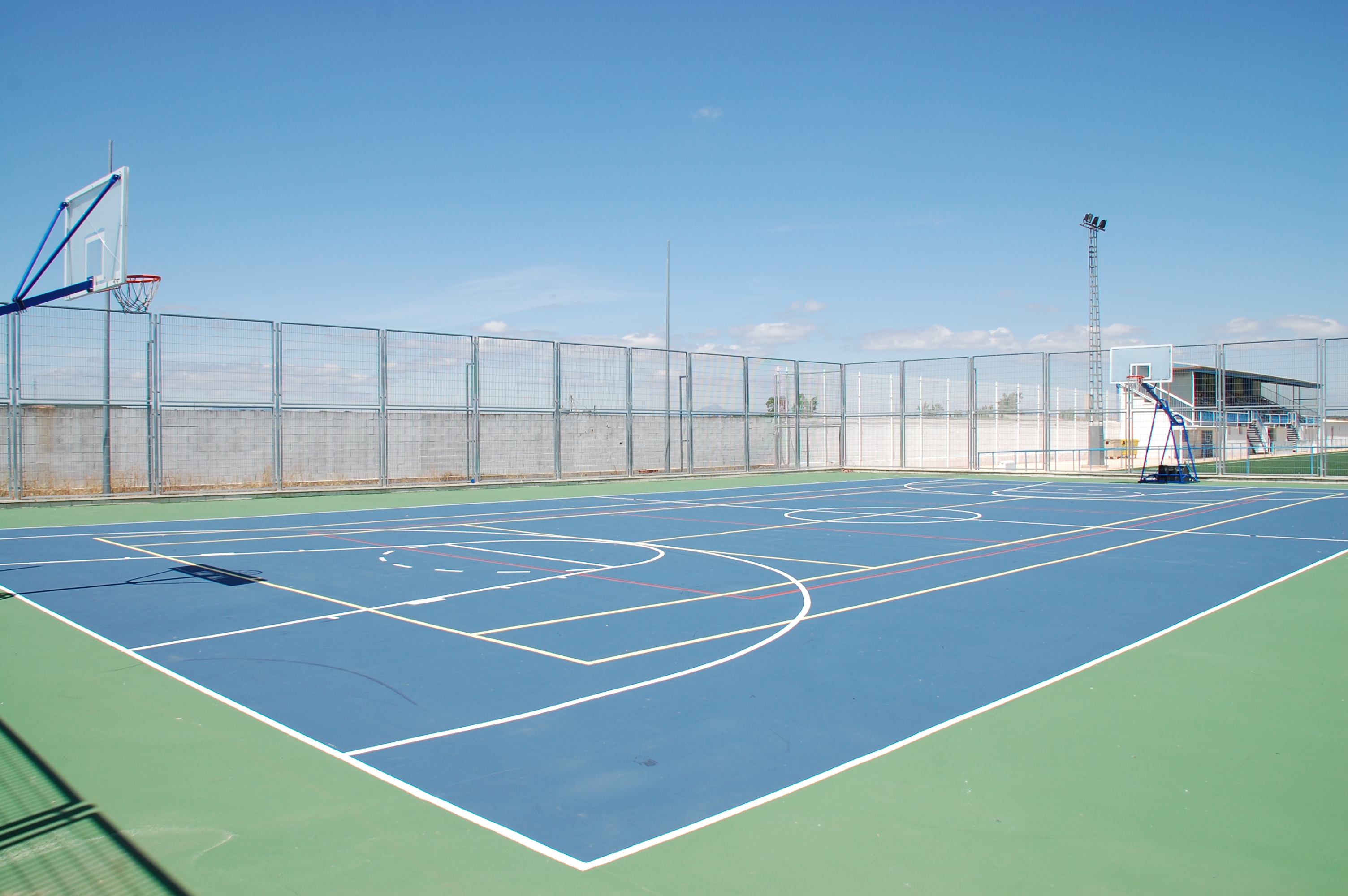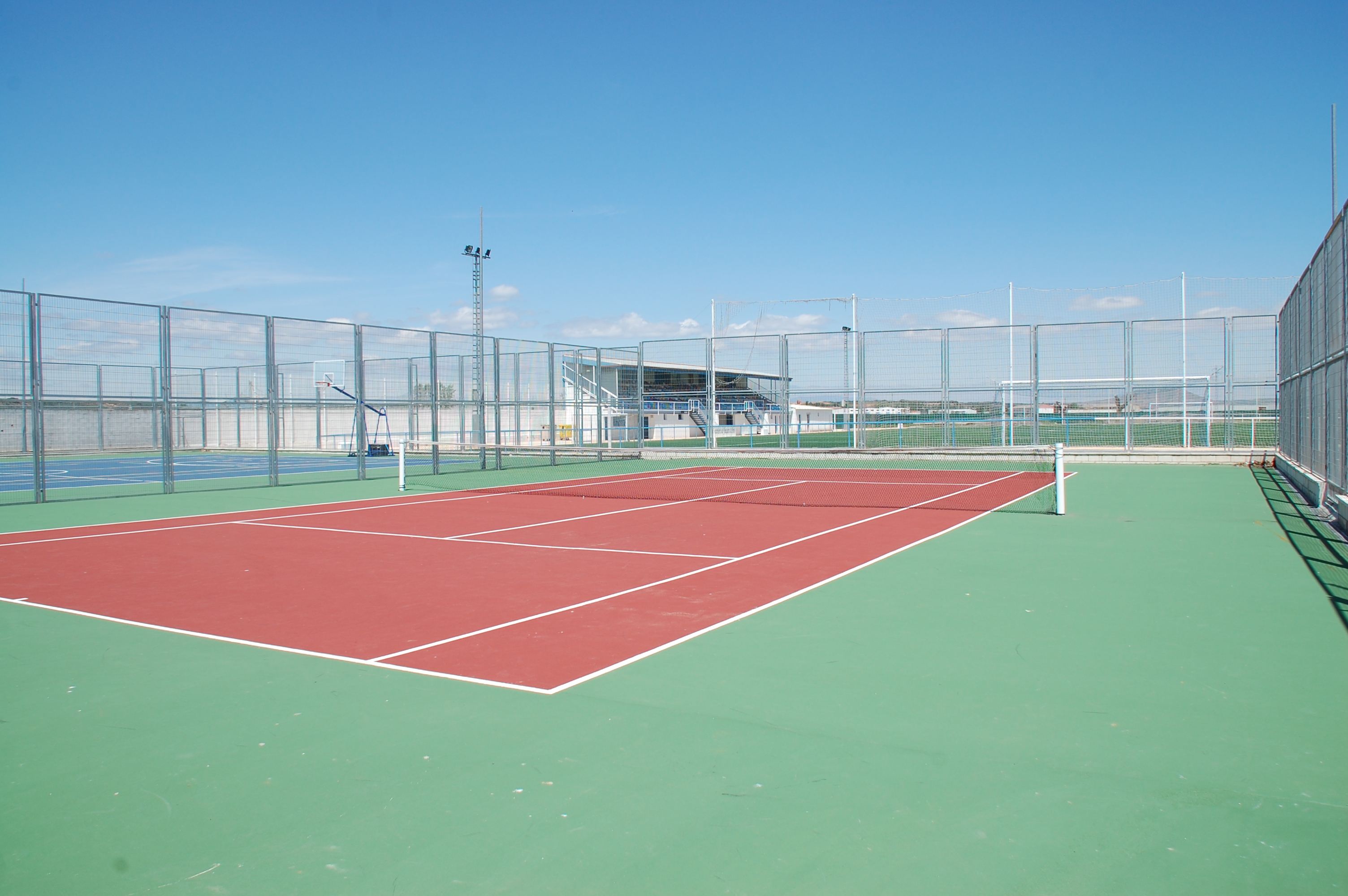 Complejo polideportivo al aire libre que comprende: dos pistas de pádel, una pista de tenis, una pista de baloncesto, un frontón cubierto, un campo de fútbol sala de césped artificial, un campo de fútbol sala de cemento, dos campos de fútbol 7 de césped artificial y un campo de fútbol 11 de césped artificial.