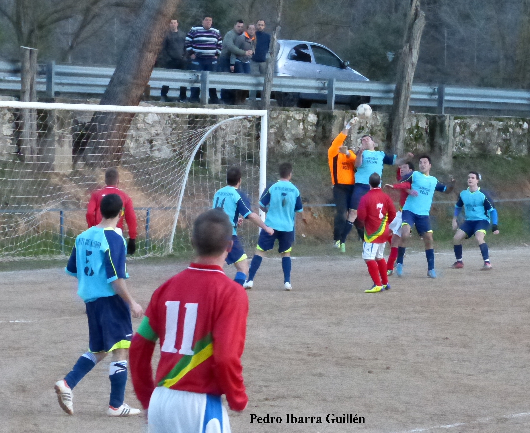 De nuevo campo de tierra con lo que conlleva esto para el juego del Yunquera. El partido empezó muy bien para los chicos de Koki ya que en el primer minuto, Javi Robledo, tuvo la primera ocasión de gol clara en un contraataque. En el minuto 6 el árbitro se comió un claro penalti por mano de un defensor local. En el minuto 8 se produce una jugada dolorosa para un jugador de cada equipo, con resultado de 6 puntos de sutura en la frente para Emilio José González, y otros 12 puntos en la cabeza para Juan Peralta, y que según el colegiado fue motivo de cartulina amarilla para este ultimo que le causara la baja por acumulación de tarjetas para el partido de Horche del próximo domingo.