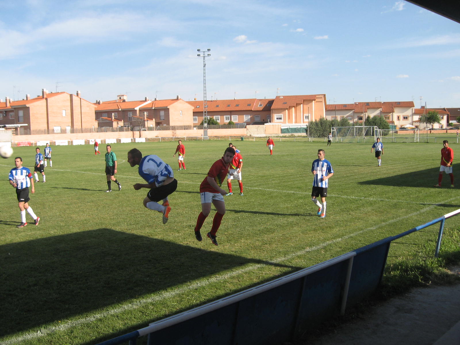 A partir de este gol la reacción de los jugadores del Torrejón no se hizo esperar y empezaron a poner en apuros la portería azulona con llegadas muy peligrosas, solventadas unas veces por la defensa y otras por su guardameta. Corría el minuto cincuenta y cinco cuando el conjunto local acortaba distancias, otra vez a balón parado por medio de su centrocampista Paganos uno de los mejores del partido. Se apretaba el marcador y con ello la intensidad del juego del equipo local que buscaba darle la vuelta al partido dando así la que pudiera haber sido la sorpresa de la jornada. Desde ese minuto hasta el final del partido el desgaste físico de los jugadores de ambos equipos fue pasando factura en una tarde muy calurosa y apenas se crearon un par de ocasiones de peligro en cada portería por lo que el marcador no se movería.