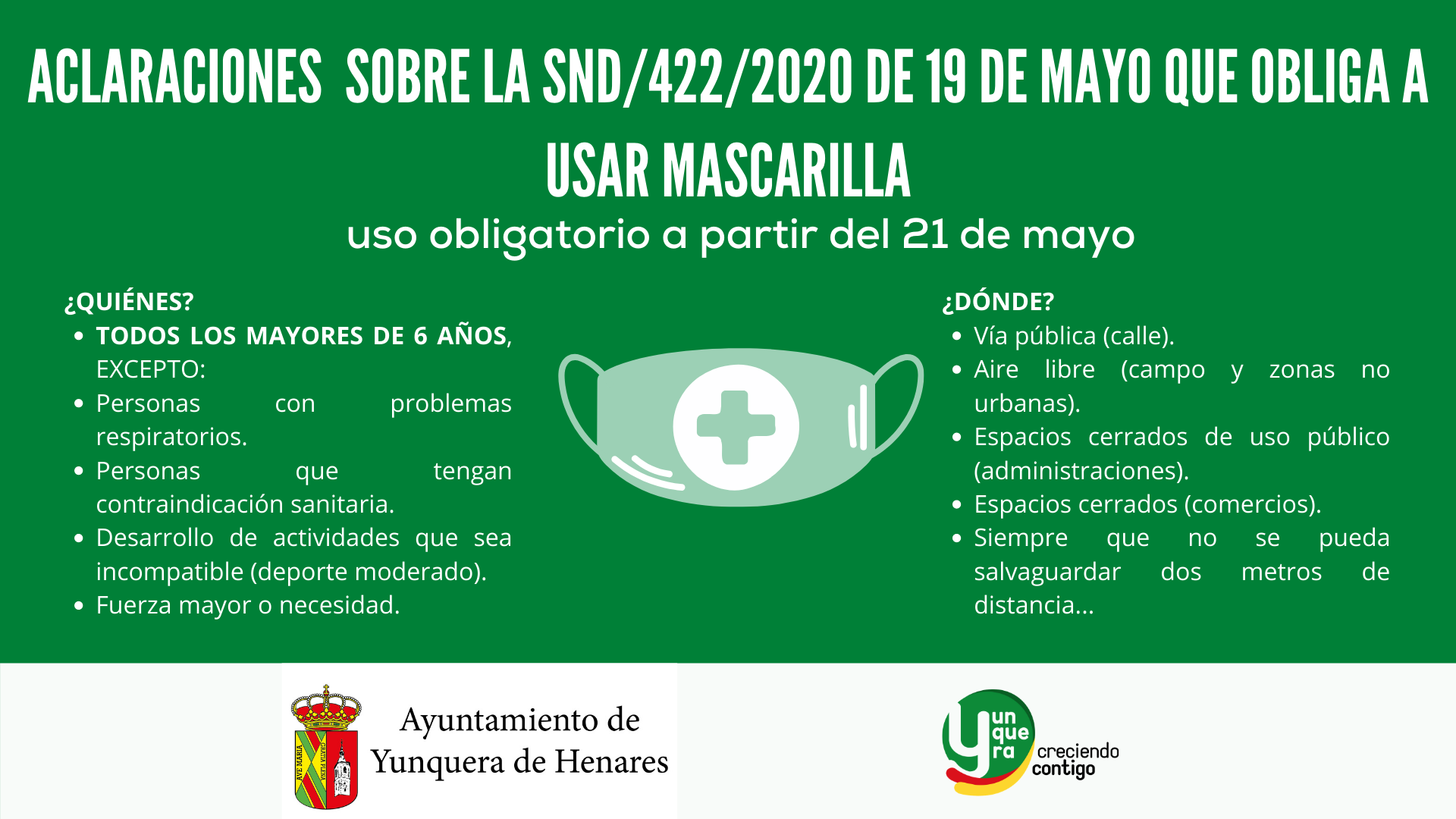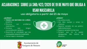 Información sobre la SND/422/2020 de 19 de mayo que obliga a usar mascarilla.
