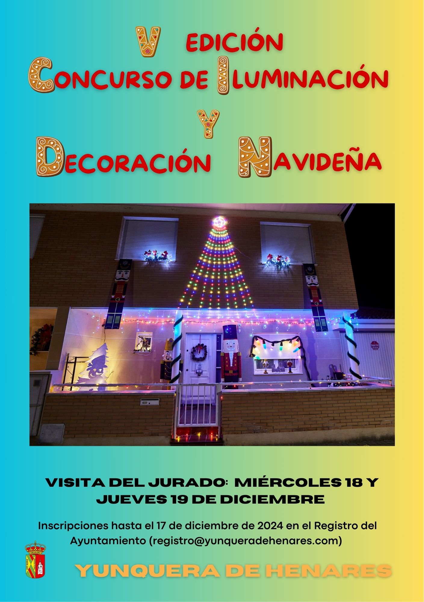 Abierto el plazo de inscripci贸n para la V edici贸n del Concurso de Iluminaci贸n y Decoraci贸n Navide帽a de Yunquera de Henares. Los interesados en participar tendr谩n que inscribirse en la Oficina de Registro del Ayuntamiento de Yunquera de Henares hasta el pr贸ximo martes d铆a 17, ya sea en la categor铆a de Comercios o en la de Viviendas. Los miembros del jurado realizar谩n las visitas necesarias para su deliberaci贸n los d铆as 18 y 19 de diciembre, a partir de las 17.00 horas.