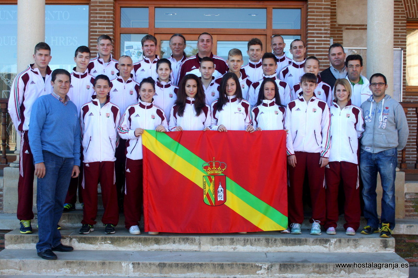 LA EXPEDICIÓN MAGIAR ALOJADA EN LA LOCALIDAD Y COMPUESTA POR MAS DE UNA TREINTENA DE COMPONENTES LLEVARÁ ACABO SUS ENTRENAMIENTOS EN LAS INSTALACIONES DEPORTIVAS CEDIDAS POR EL AYUNTAMIENTO CAMPIÑERO MIENTRAS DURE LA COMPETICIÓN DEL MUNDIAL DE KARATE CADETE-JUNIOR QUE SE CELEBRA EN GUADALAJARA DEL 7 AL 10 DE NOVIEMBRE