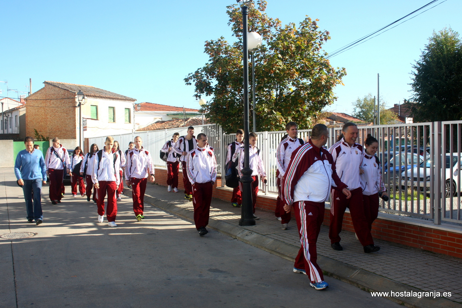 El equipo hungaro dirigiendose al entrenamiento matutino acompañados del primer edil