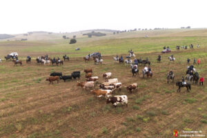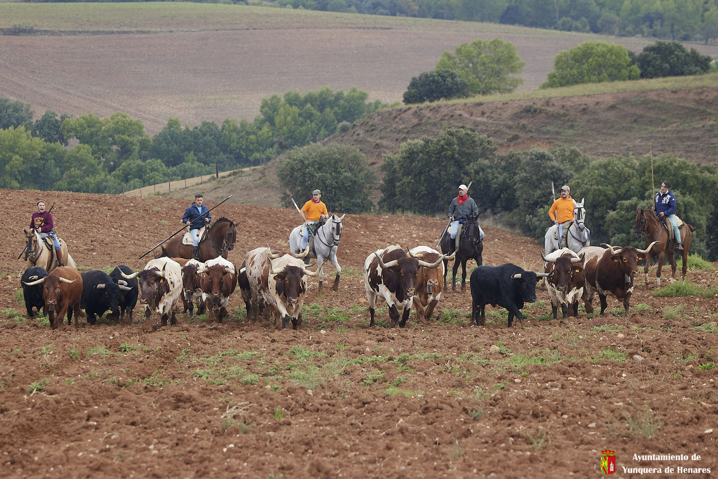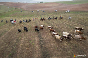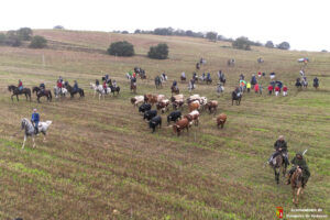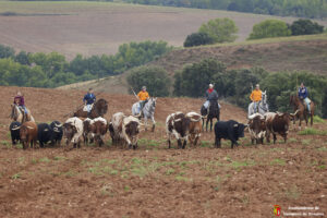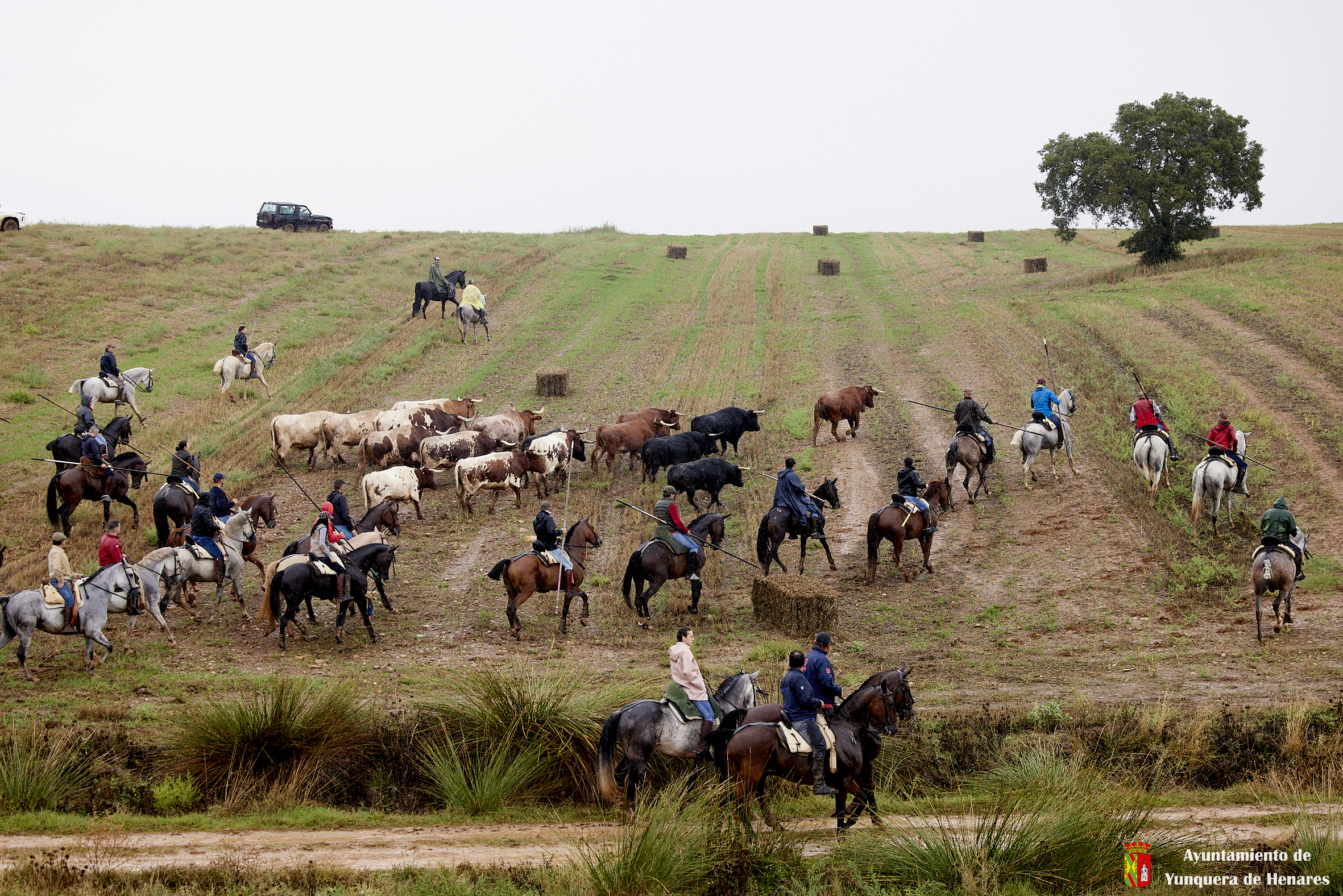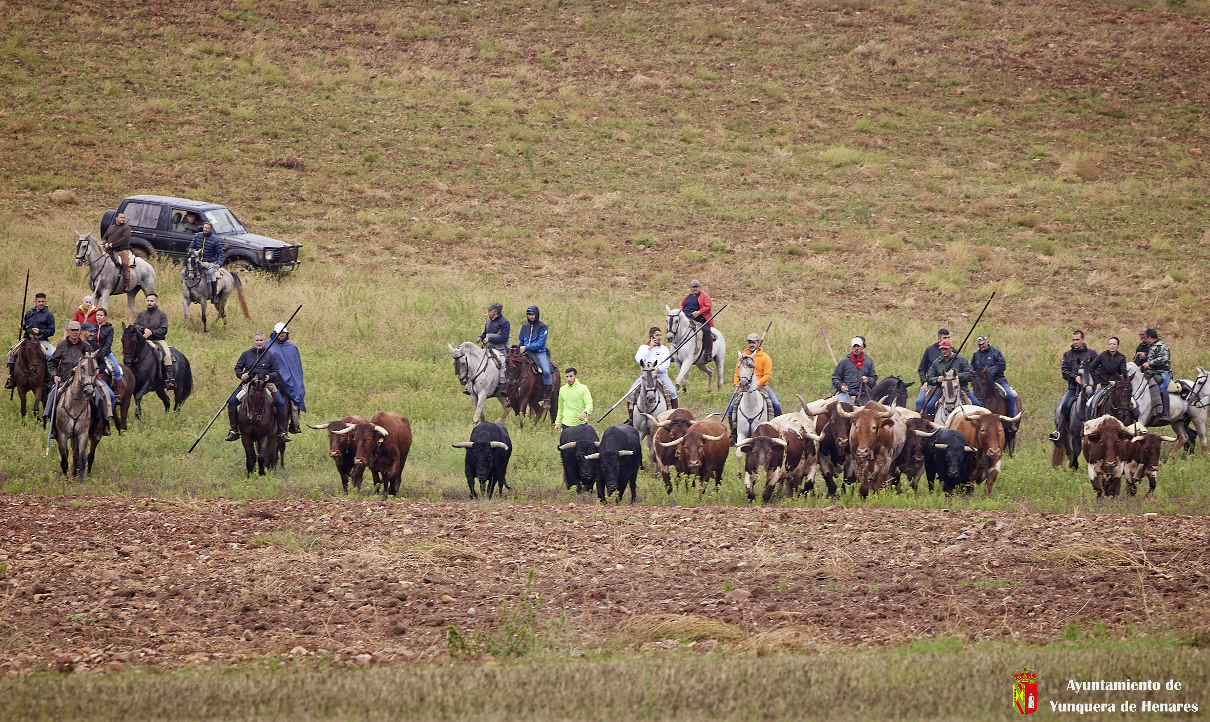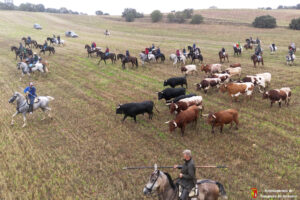 Toros y bueyes han ido en todo momento hermanados y sin separarse de los caballistas y de la ganadera Sandra Sopeña, que ha guiado a la manada por el recorrido establecido. Una vez pasado el circuito de Motocross y con Yunquera de fondo, se ha visto a una veintena de coches esperando ver pasar a los astados de camino a las parcelas agrícolas de la campiña.