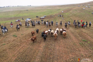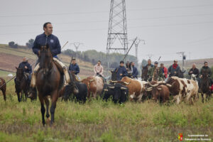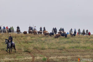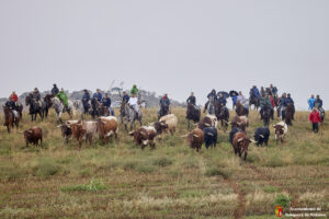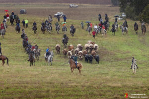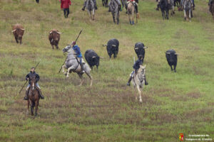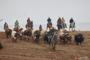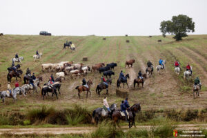 La lluvia caída en las ultimas horas ha provocado que el camino estuviera algo más pesado por el barro generado en las parcelas. Caballistas, toros y corredores avanzaban con más lentitud de lo habitual por la pesadez del terreno. Algo que también lo han notado miembros de la organización y público asistente que han tenido alguna derrapada con sus vehículos en el recorrido.