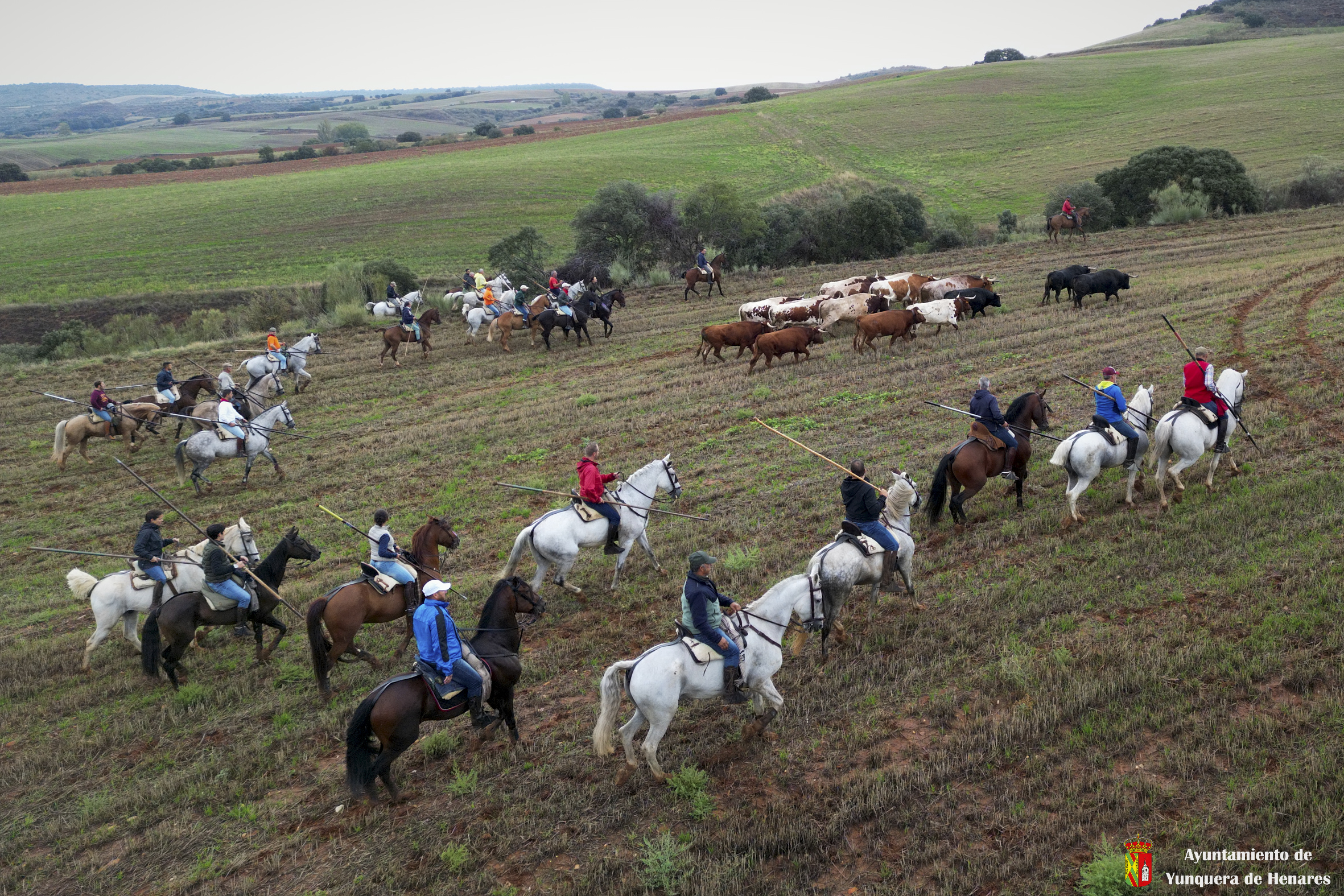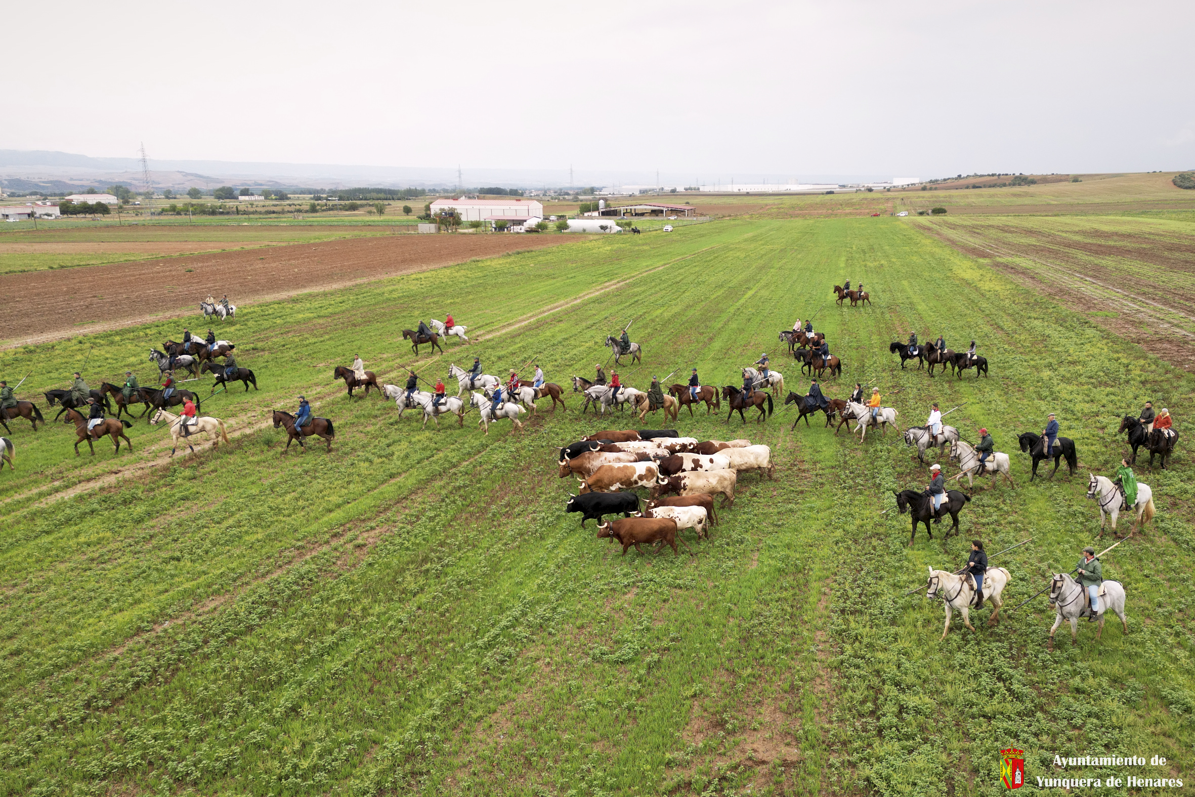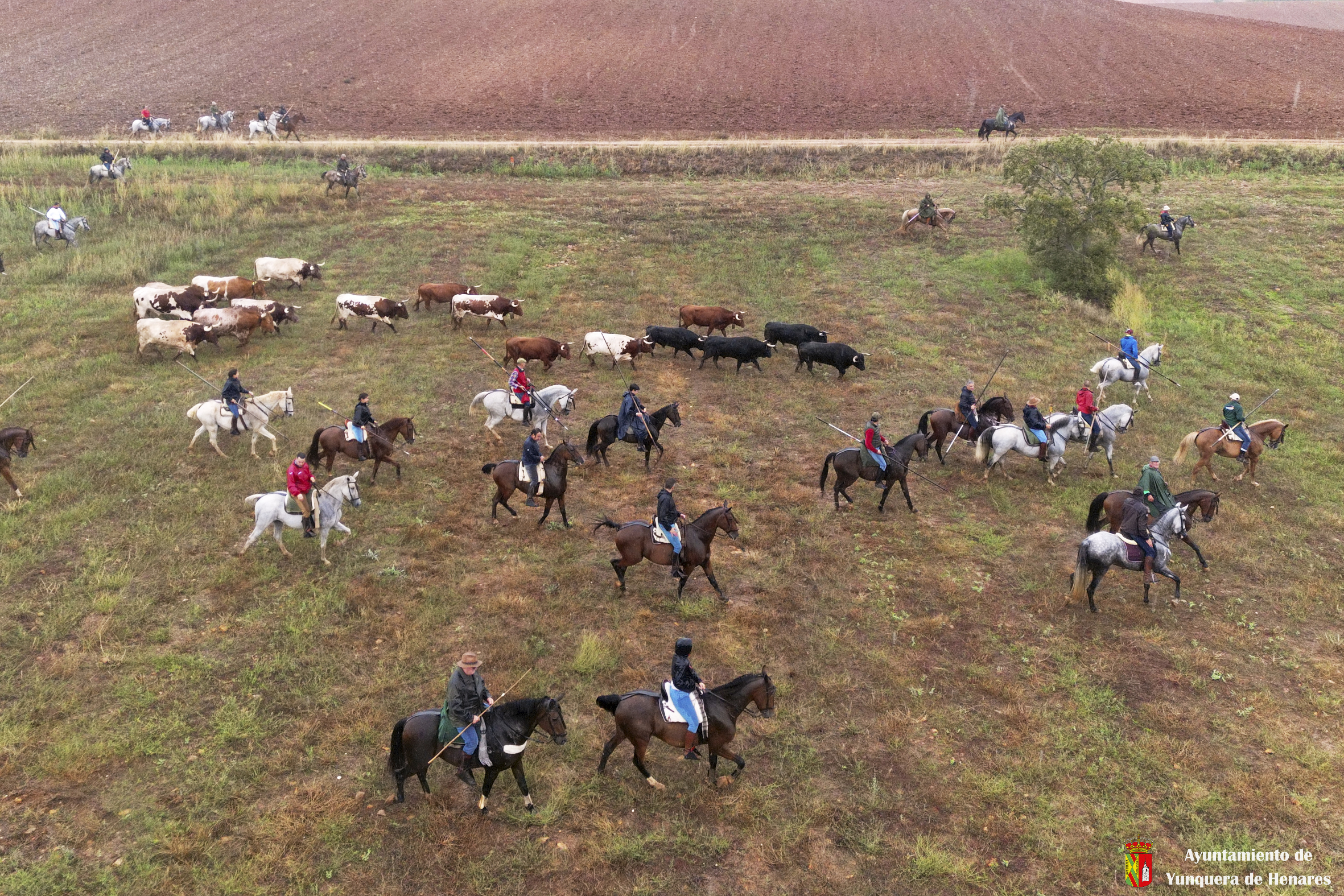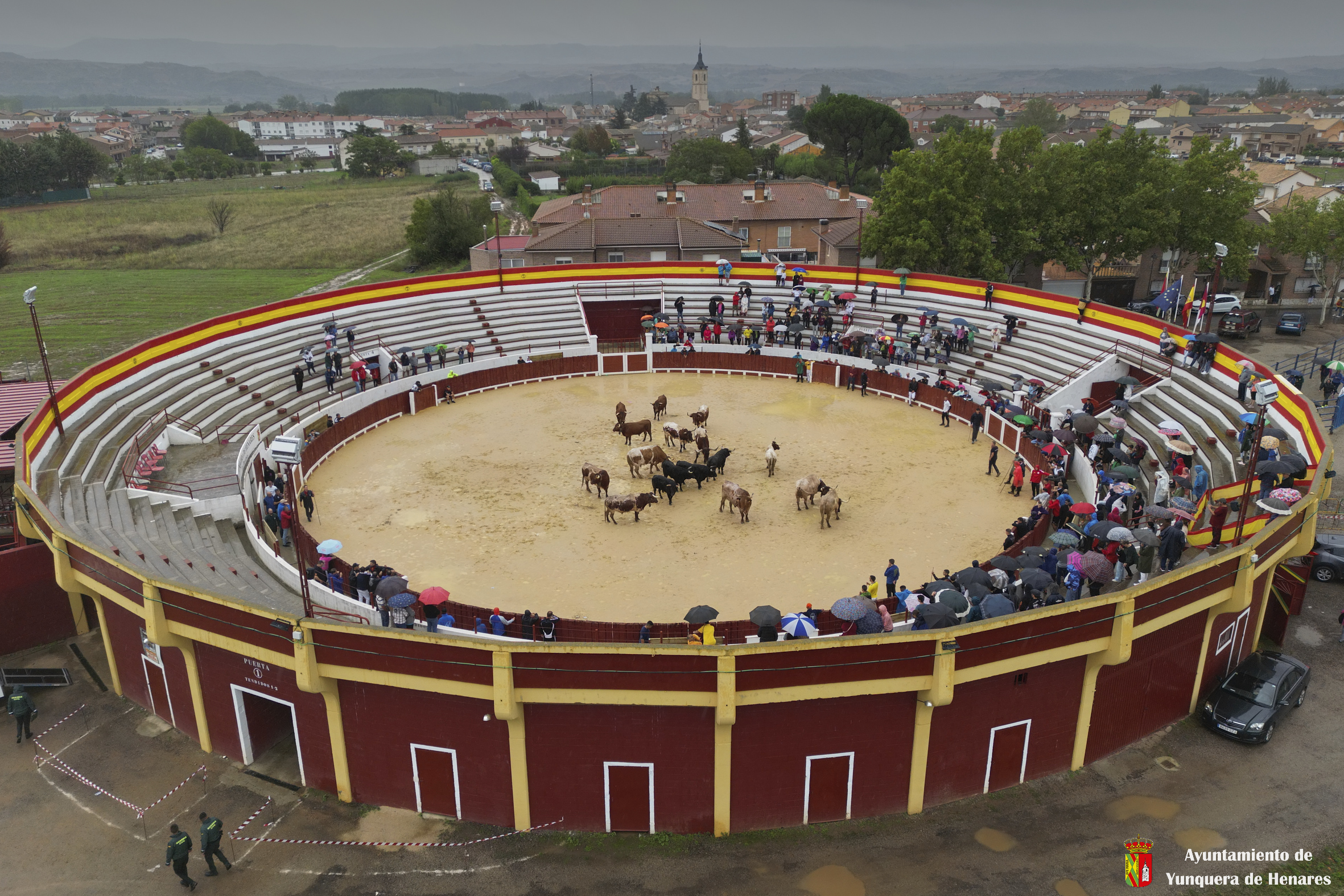 La tradicional Bajada de Yunquera de Henares se ha celebrado con normalidad a pesar de la lluvia. En torno a las diez y media de la mañana salían los utreros de la ganadería de Sandra Sopeña junto a bueyes y caballistas camino de la Plaza de toros de «Las Traviesas».