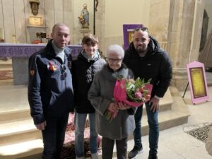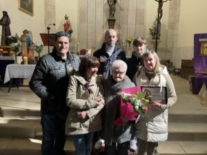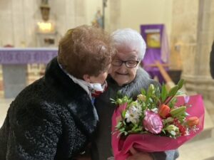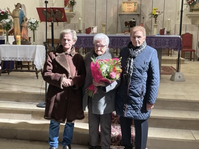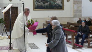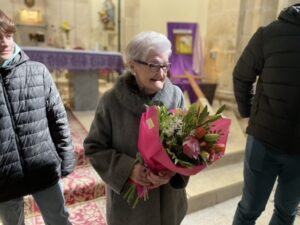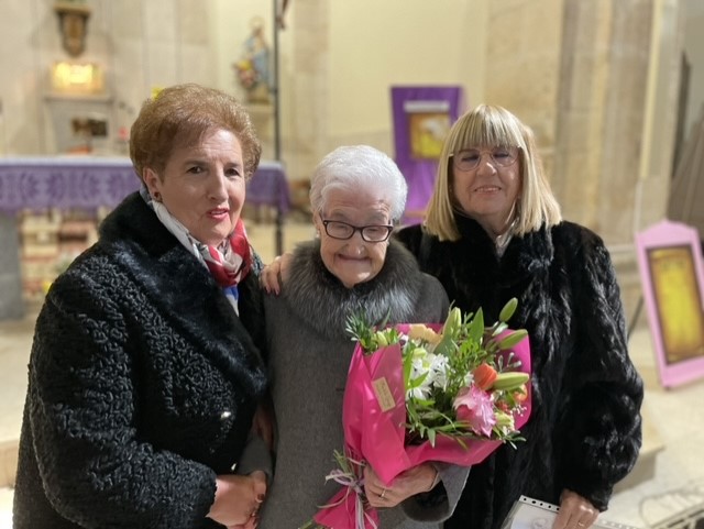 A las doce y media de la mañana se celebró la Eucaristía en la parroquia de San Pedro en donde se obsequió a Josefa con un ramo de flores y una placa conmemorativa de este día tan significativo. La homenajeada ha estado acompañada por socios de la asociación, miembros del Ayuntamiento, familiares y amigos.