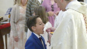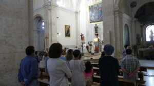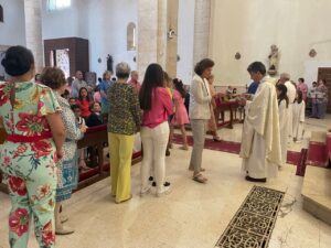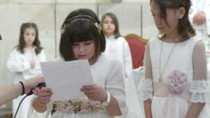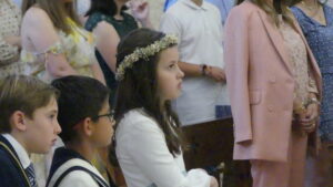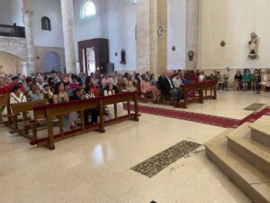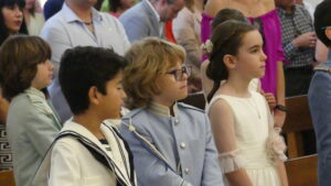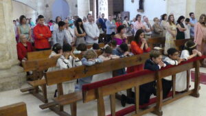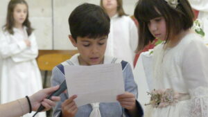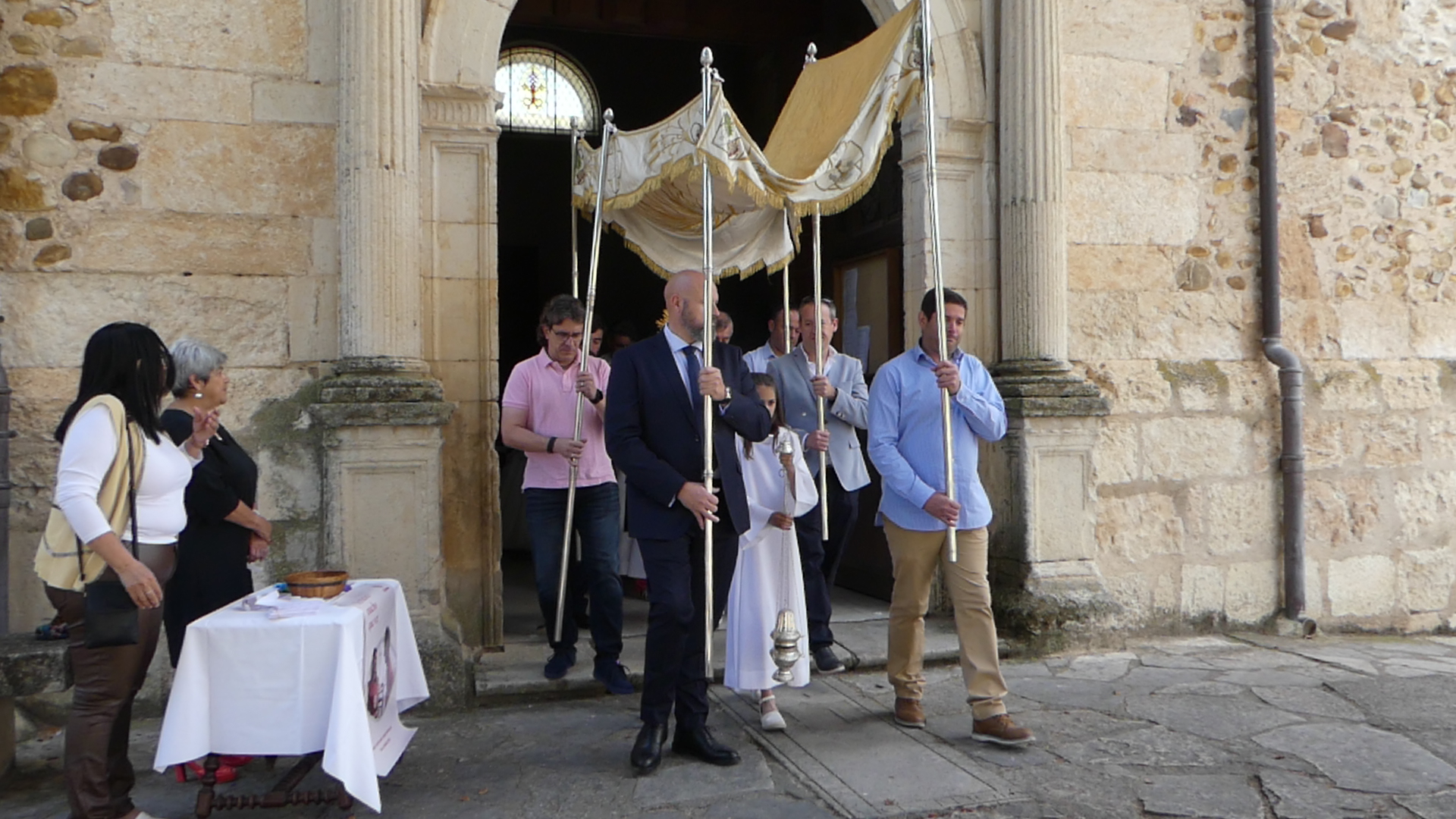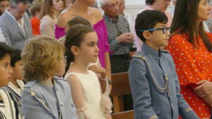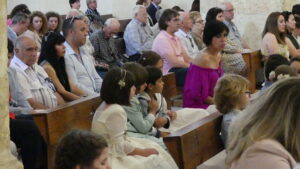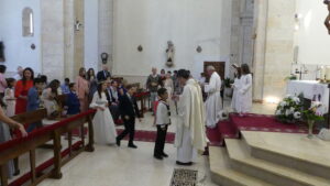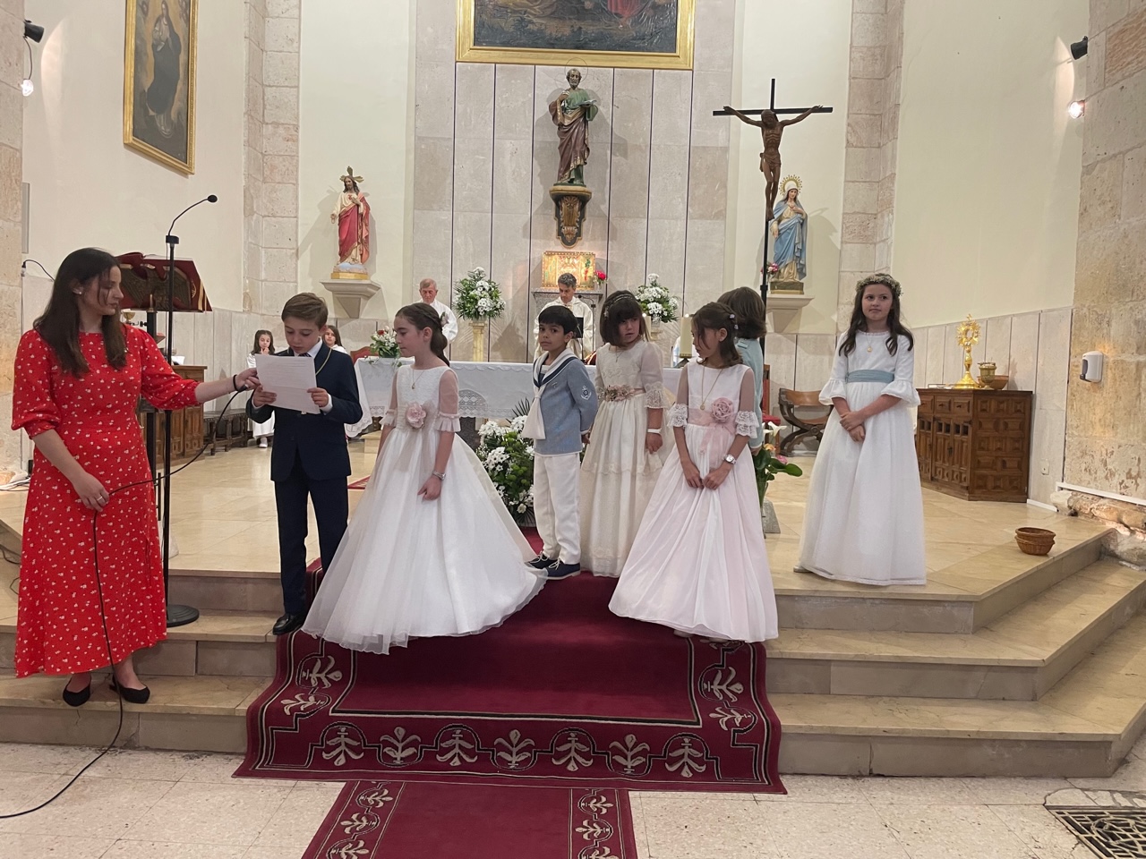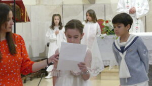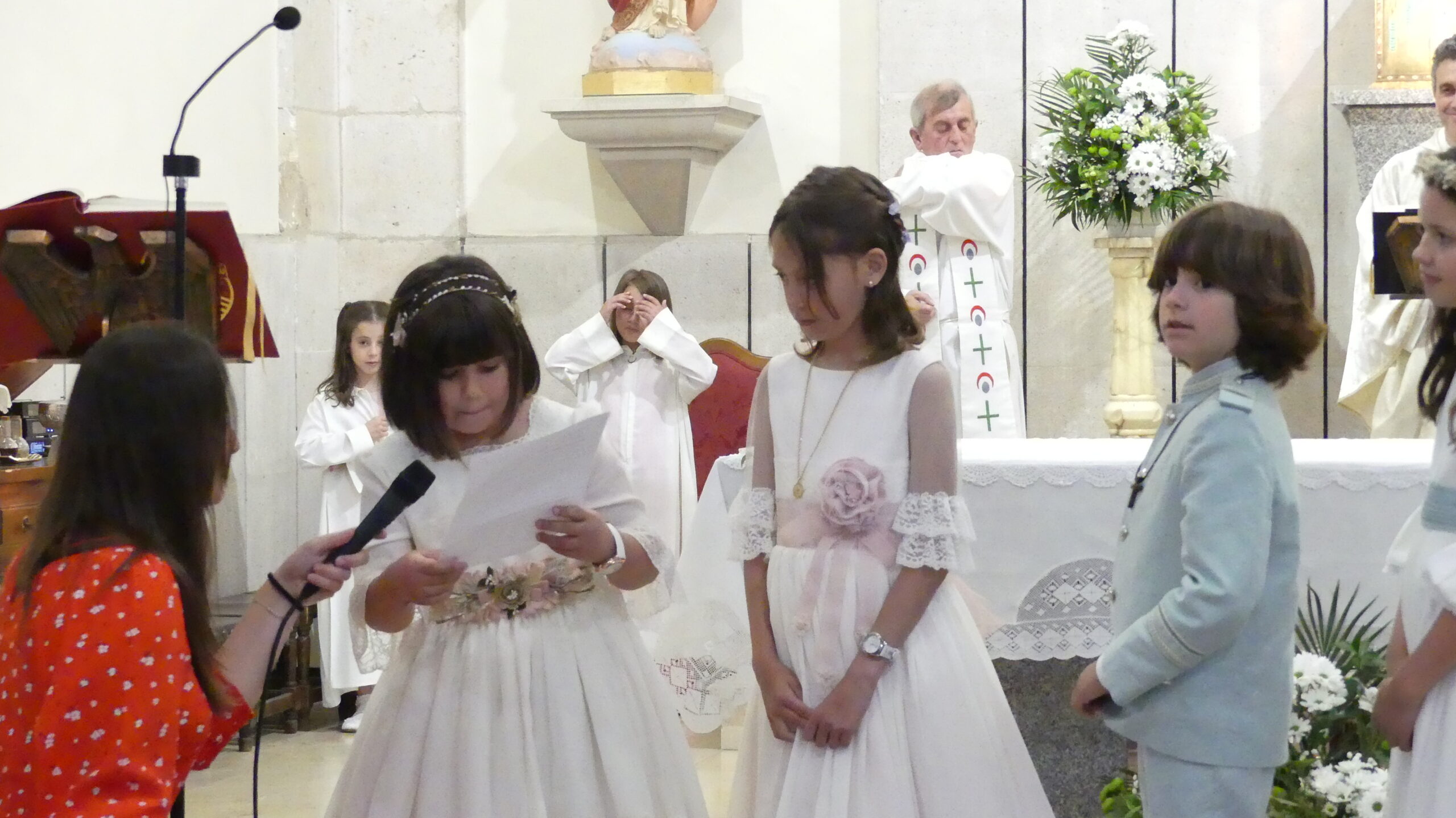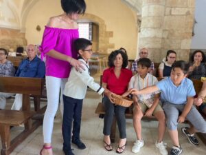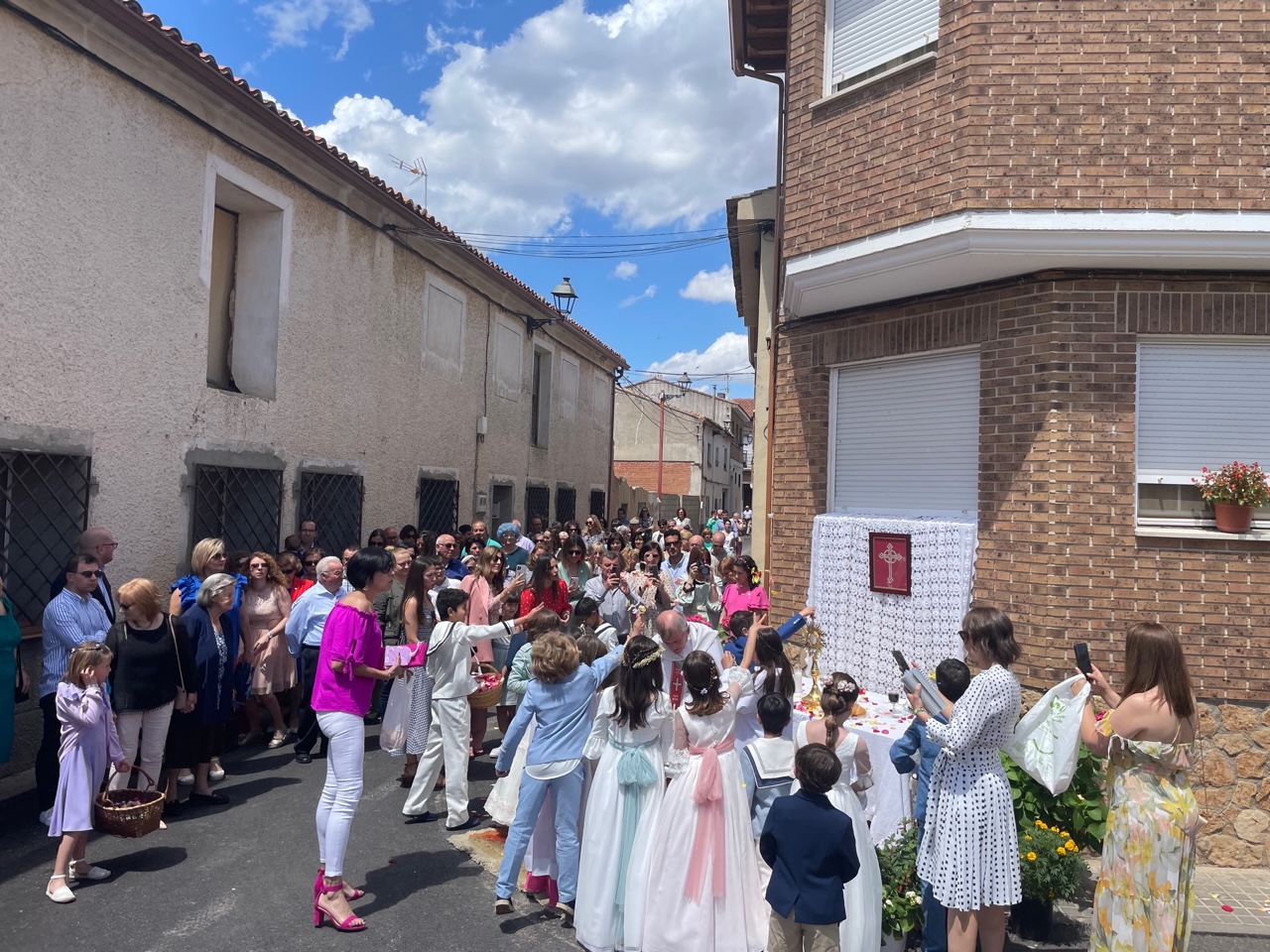 Este año han sido cuatro los altares que se han confeccionado en el recorrido de la procesión. En cada uno de ellos el párroco ha realizado la oración correspondiente y los niños han entregado pétalos a cada uno de los altares.