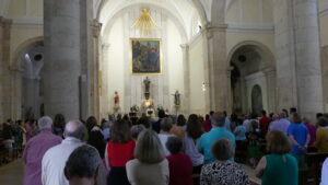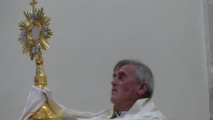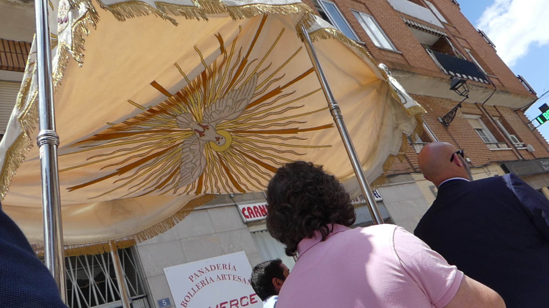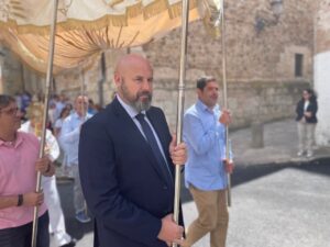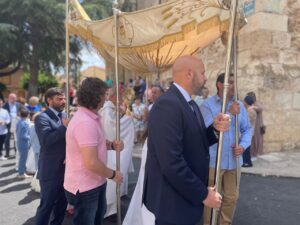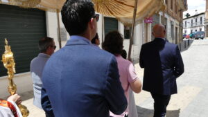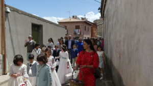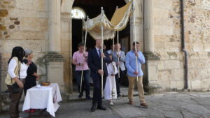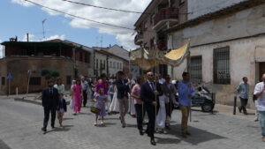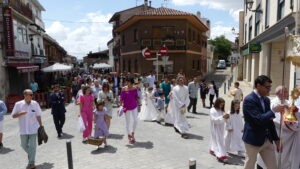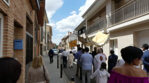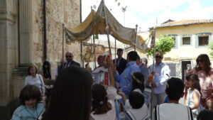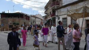Seguidamente comenzaba la procesión del Corpus encabezada por la Custodia del Santísimo que era portada por el párroco, acompañado por el palio que llevaban vecinos de Yunquera y, junto a ellos, los niños de la Comunión.