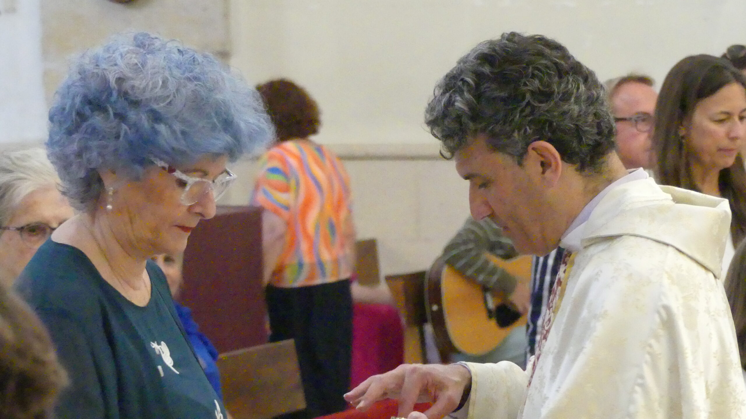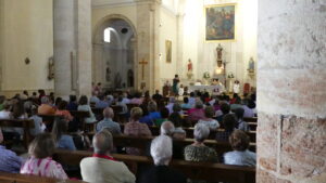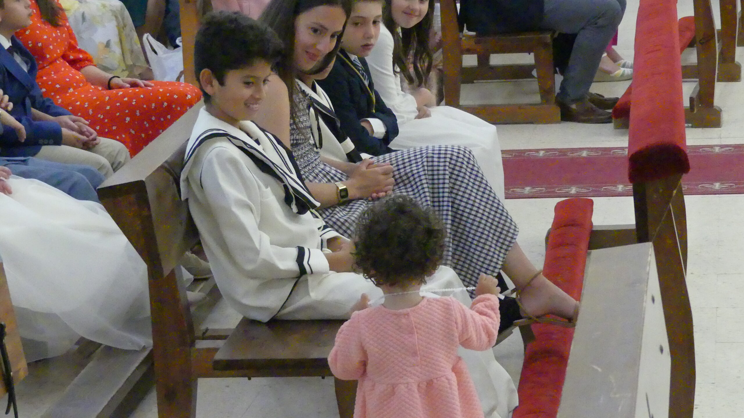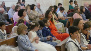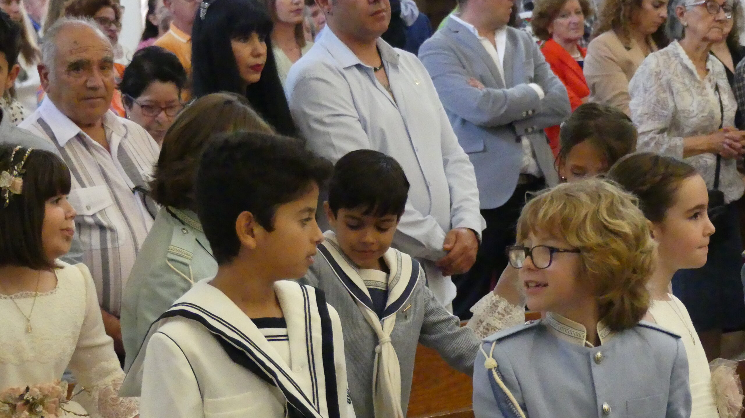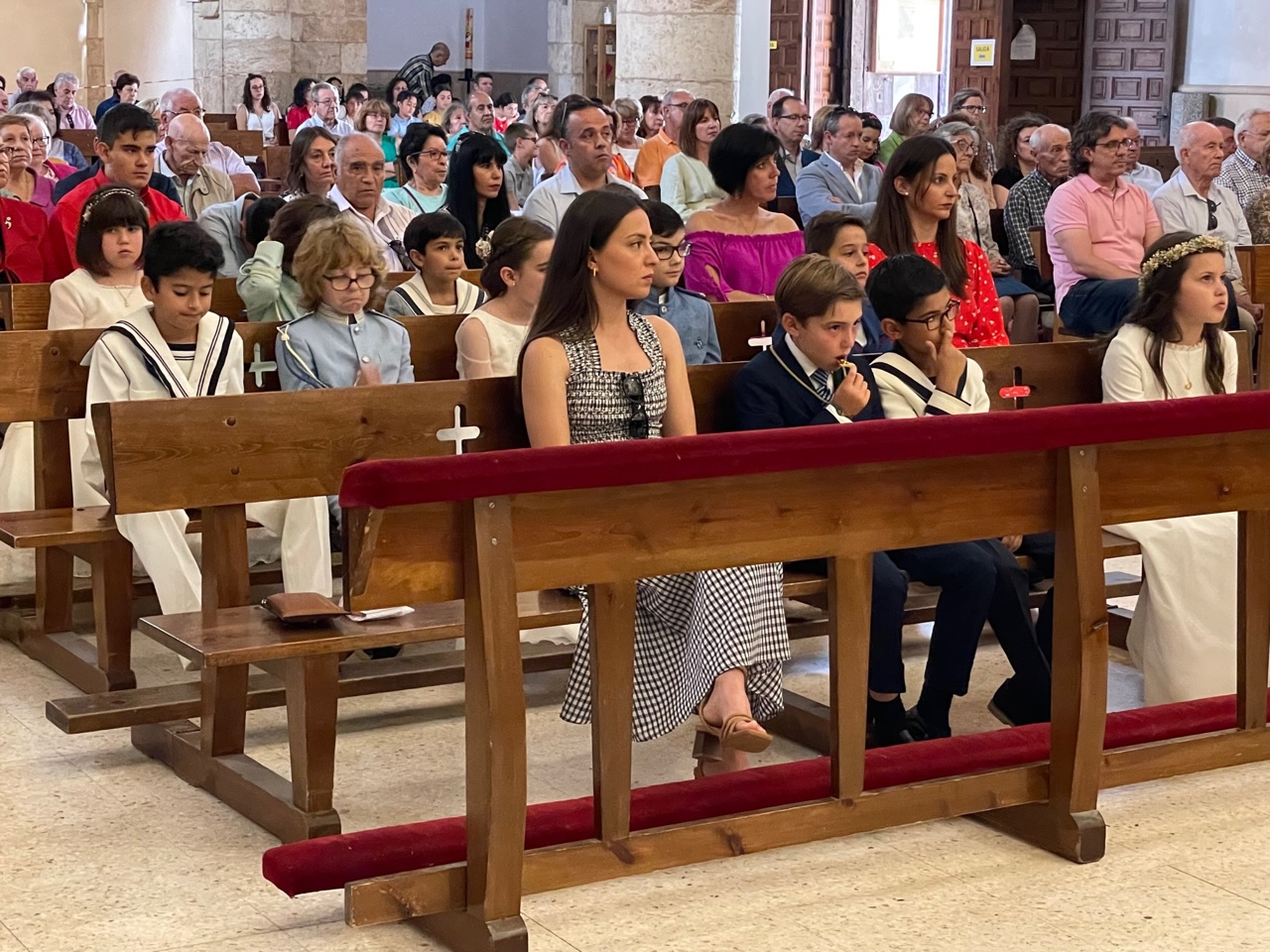 El Corpus ha concluido con la vuelta a la iglesia en la que los niños de la Comunión han vaciado sus cestas de pétalos en la puerta del templo mientras entraba la Custodia del Santísimo.