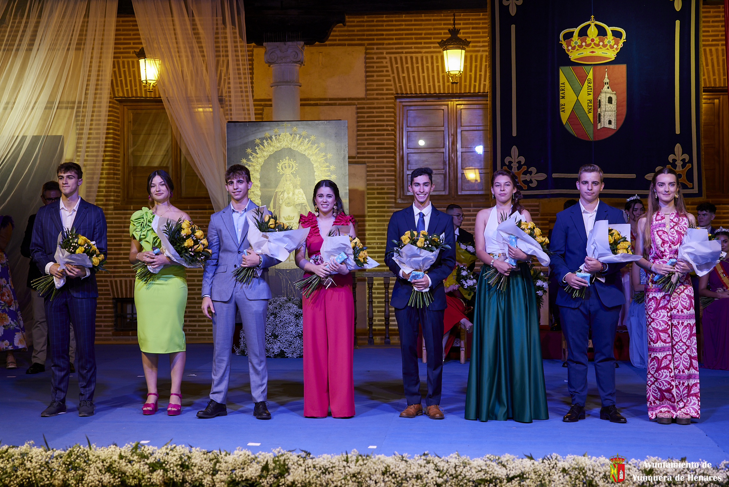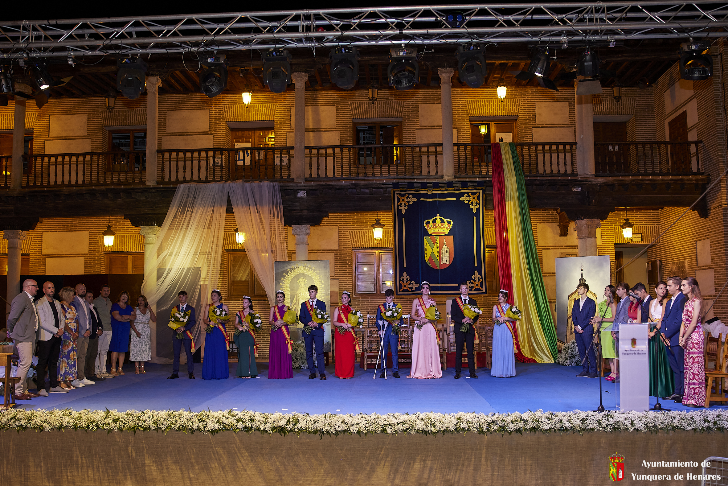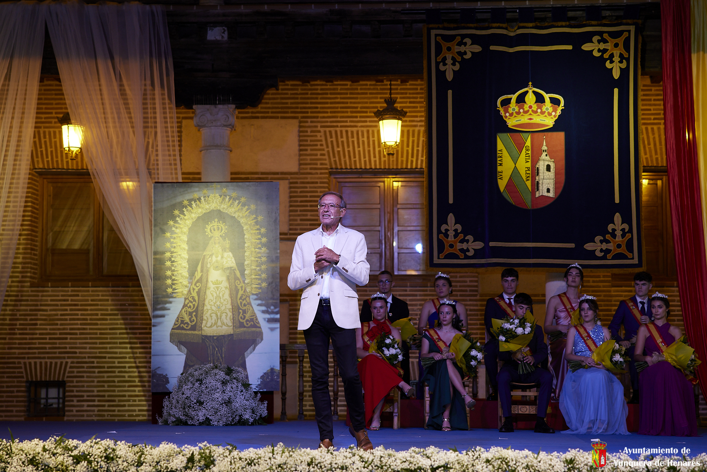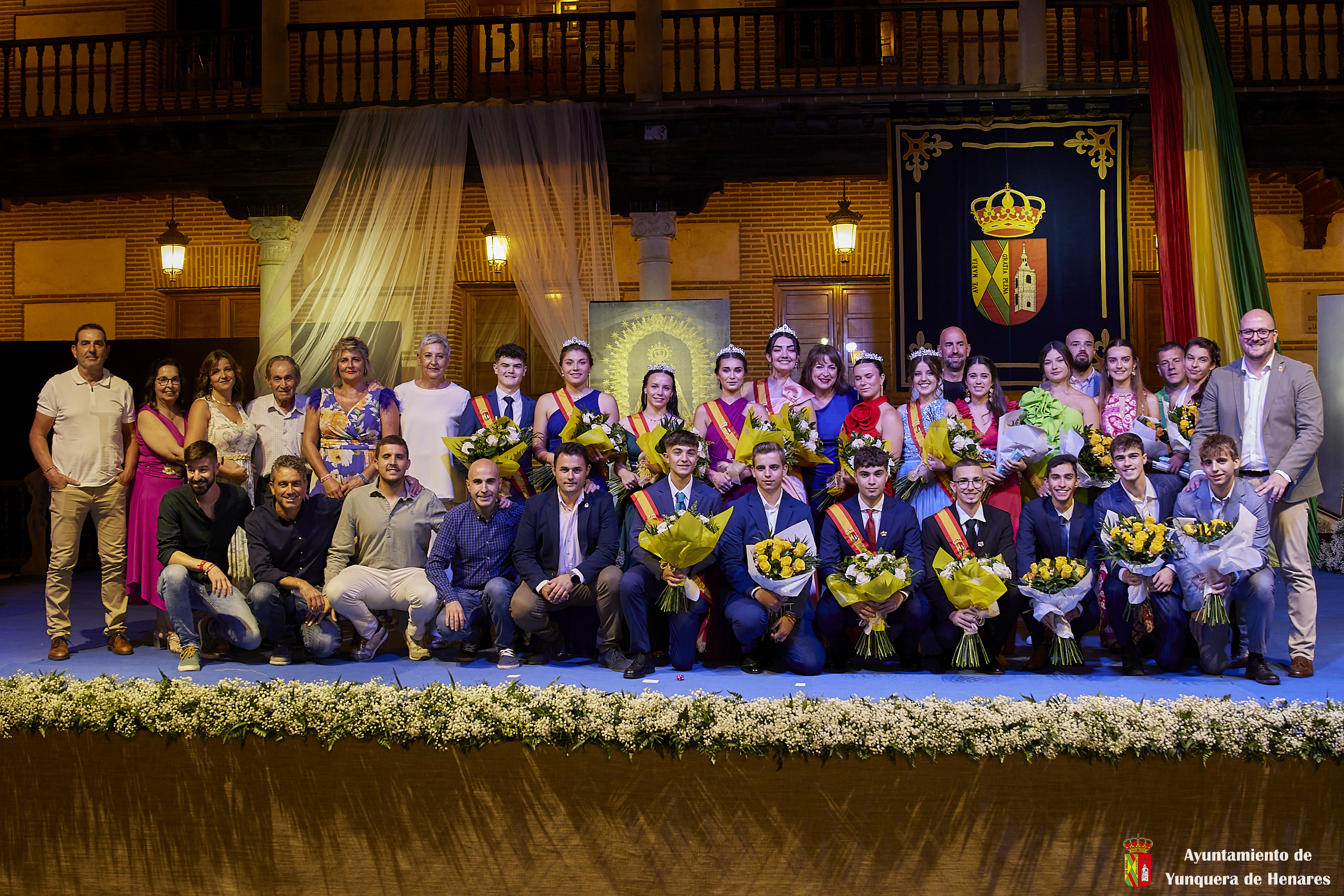 El Palacio de los Mendoza ha vuelto a ser el escenario del inicio de las fiestas patronales de Yunquera de Henares, en honor a la Virgen de la Granja, con el pregón de Carmen Moya y la coronación de los Quintos de Honor de 2023.