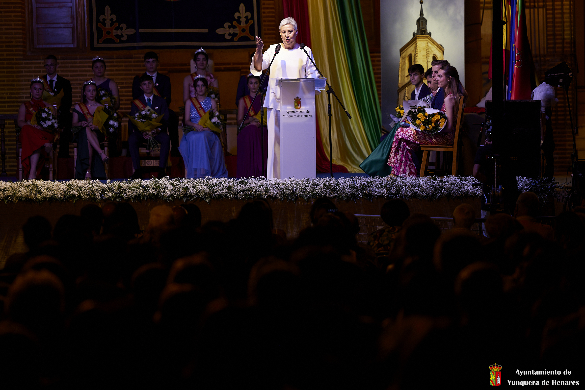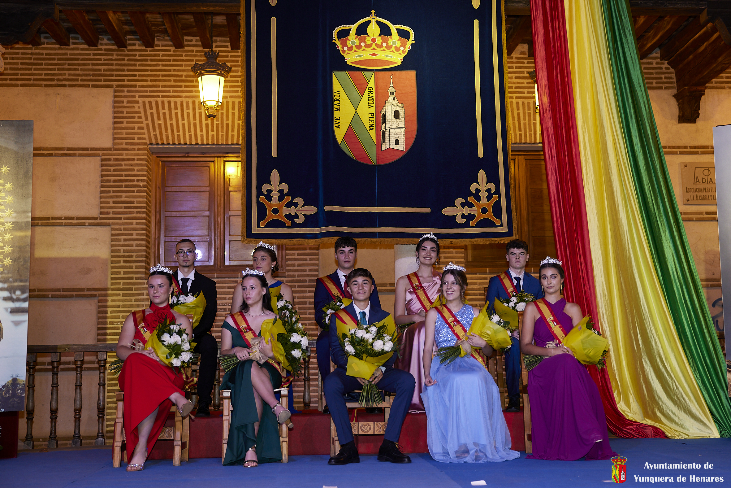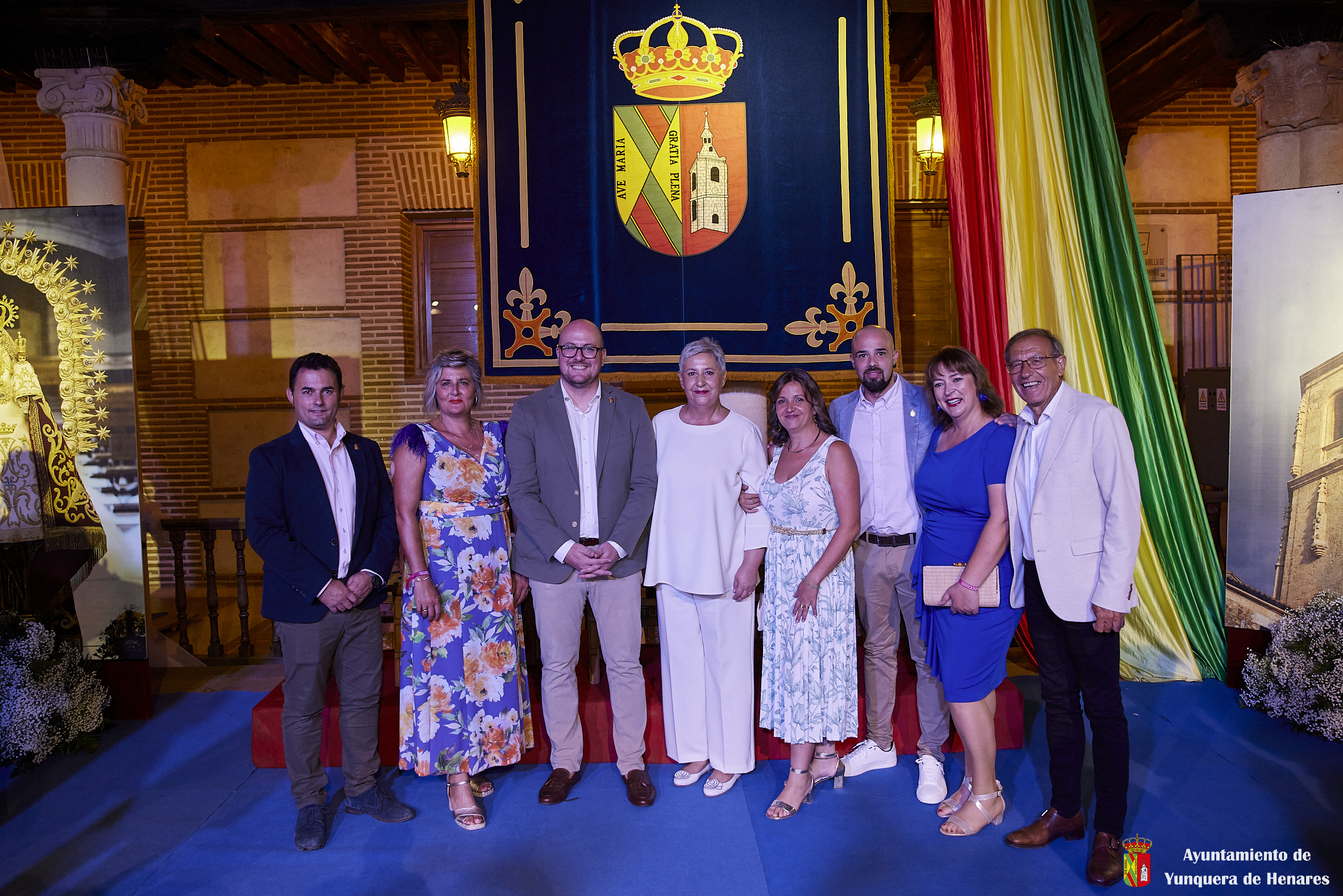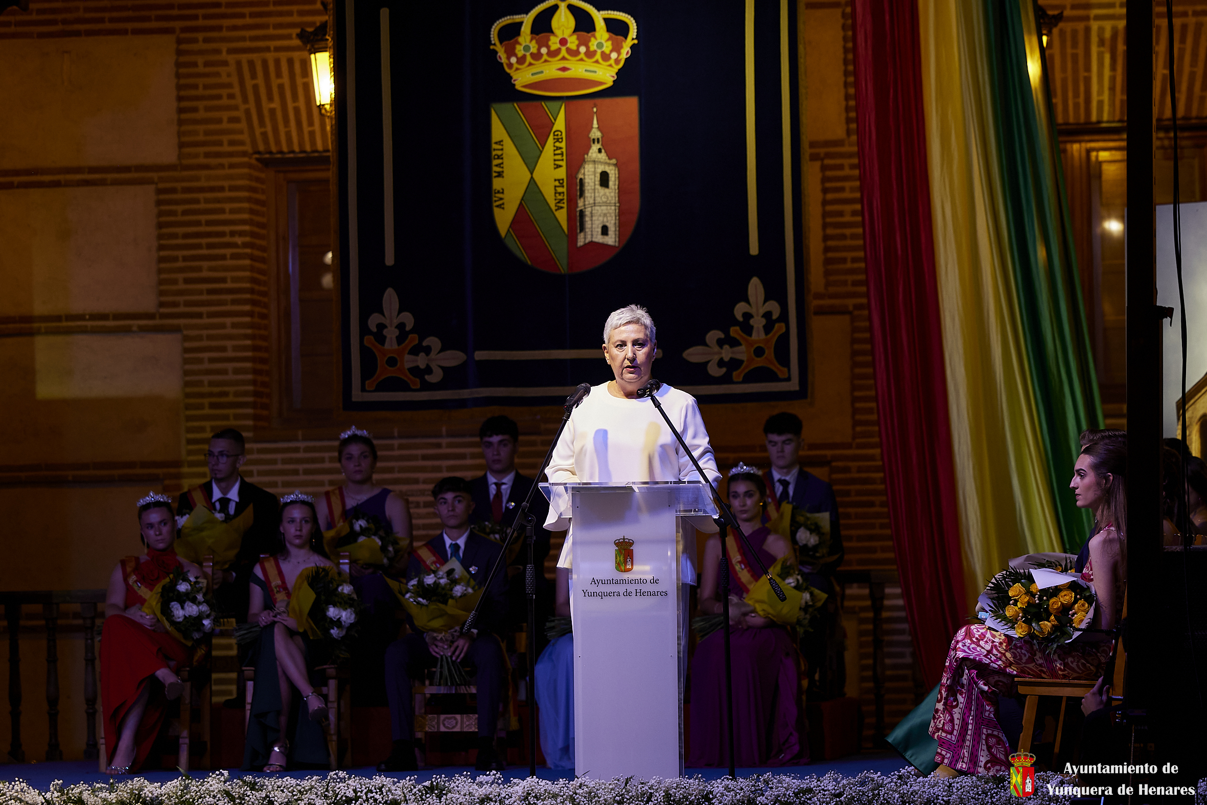 El Palacio de los Mendoza ha vuelto a ser el escenario del inicio de las fiestas patronales de Yunquera de Henares, en honor a la Virgen de la Granja, con el pregón de Carmen Moya y la coronación de los Quintos de Honor de 2023.