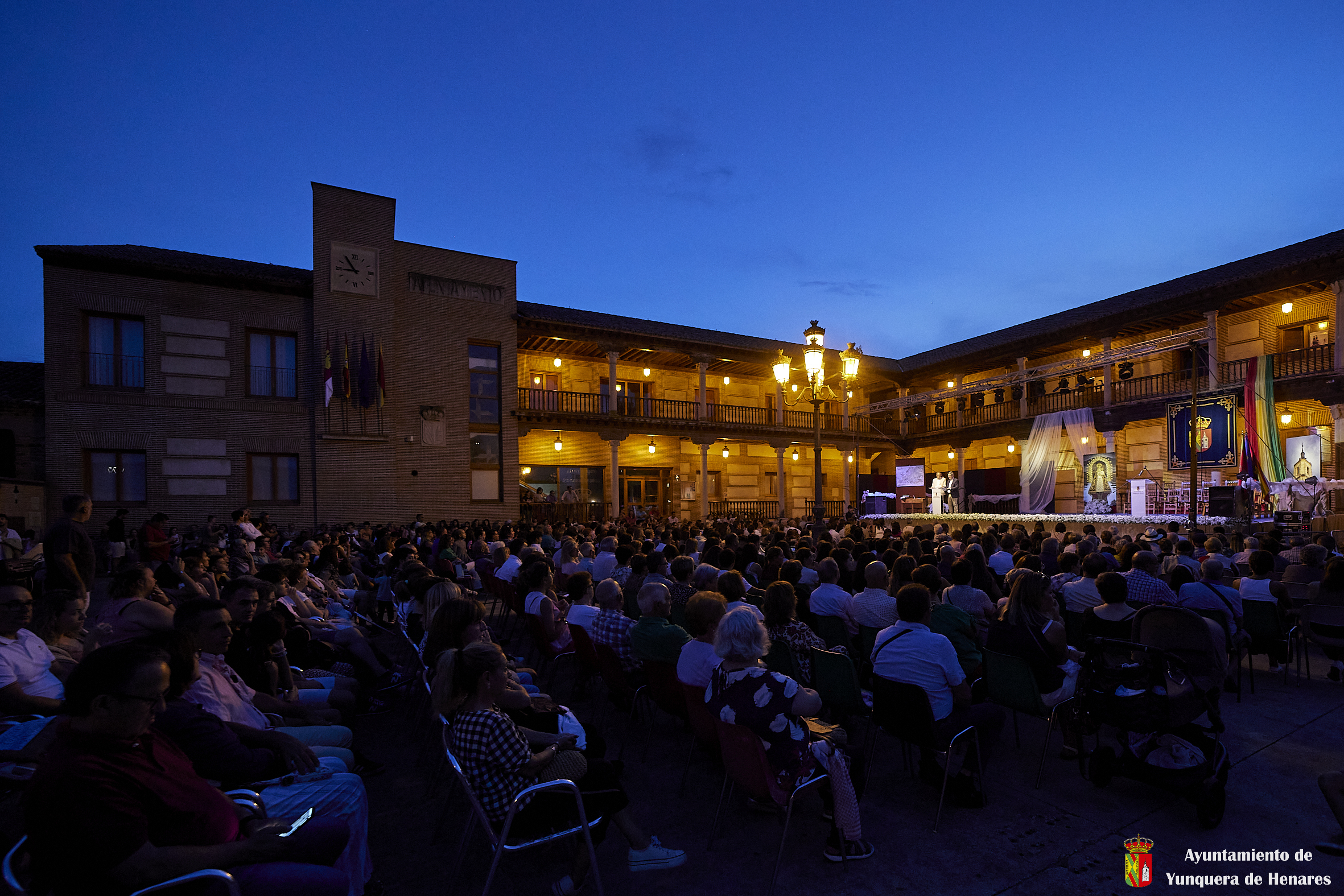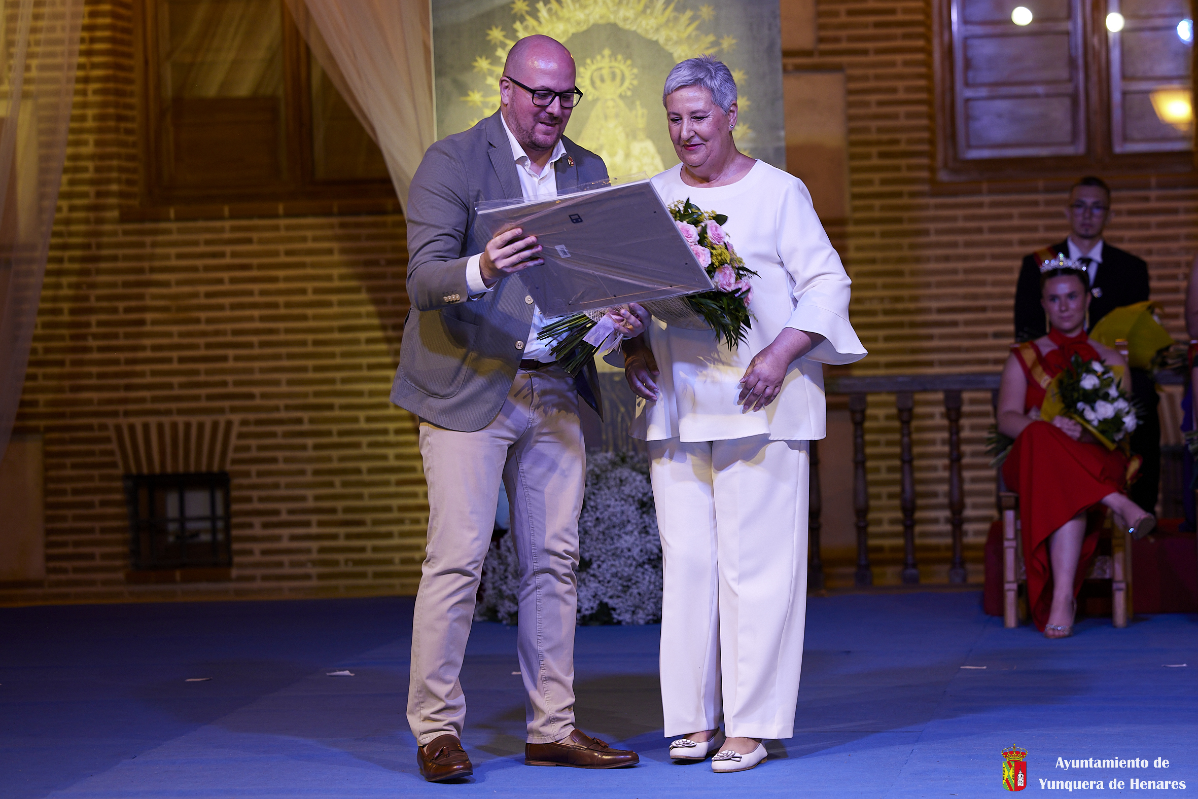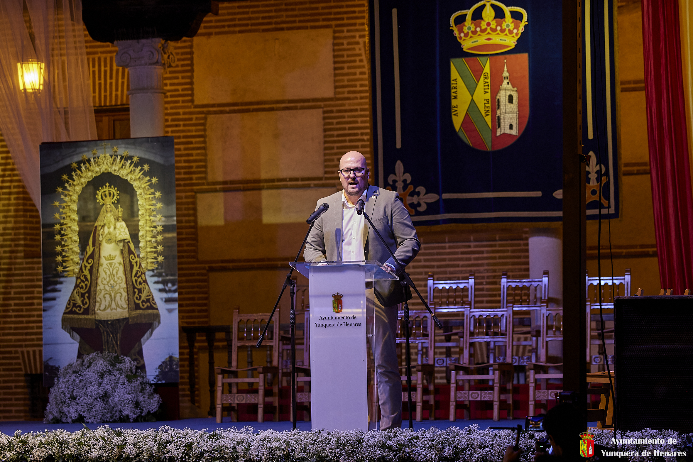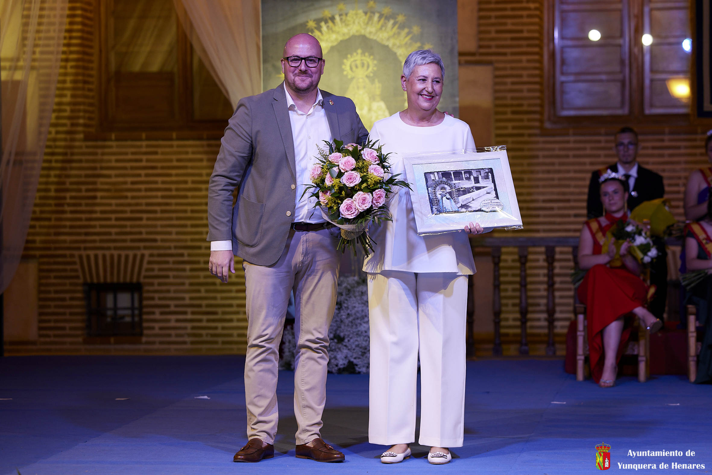 El Palacio de los Mendoza ha vuelto a ser el escenario del inicio de las fiestas patronales de Yunquera de Henares, en honor a la Virgen de la Granja, con el pregón de Carmen Moya y la coronación de los Quintos de Honor de 2023.