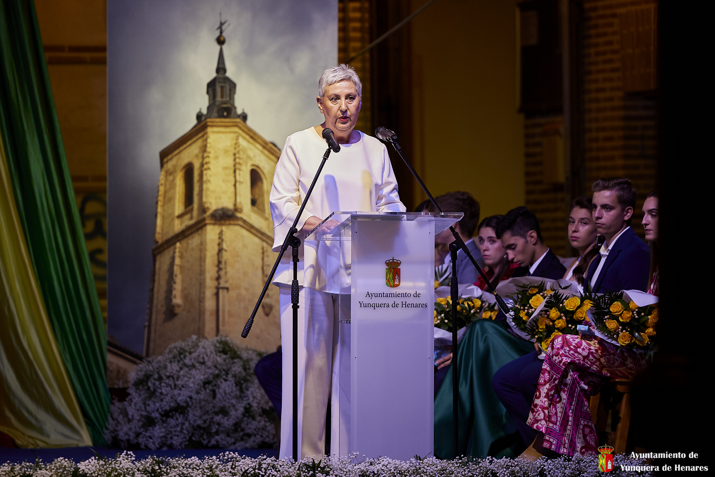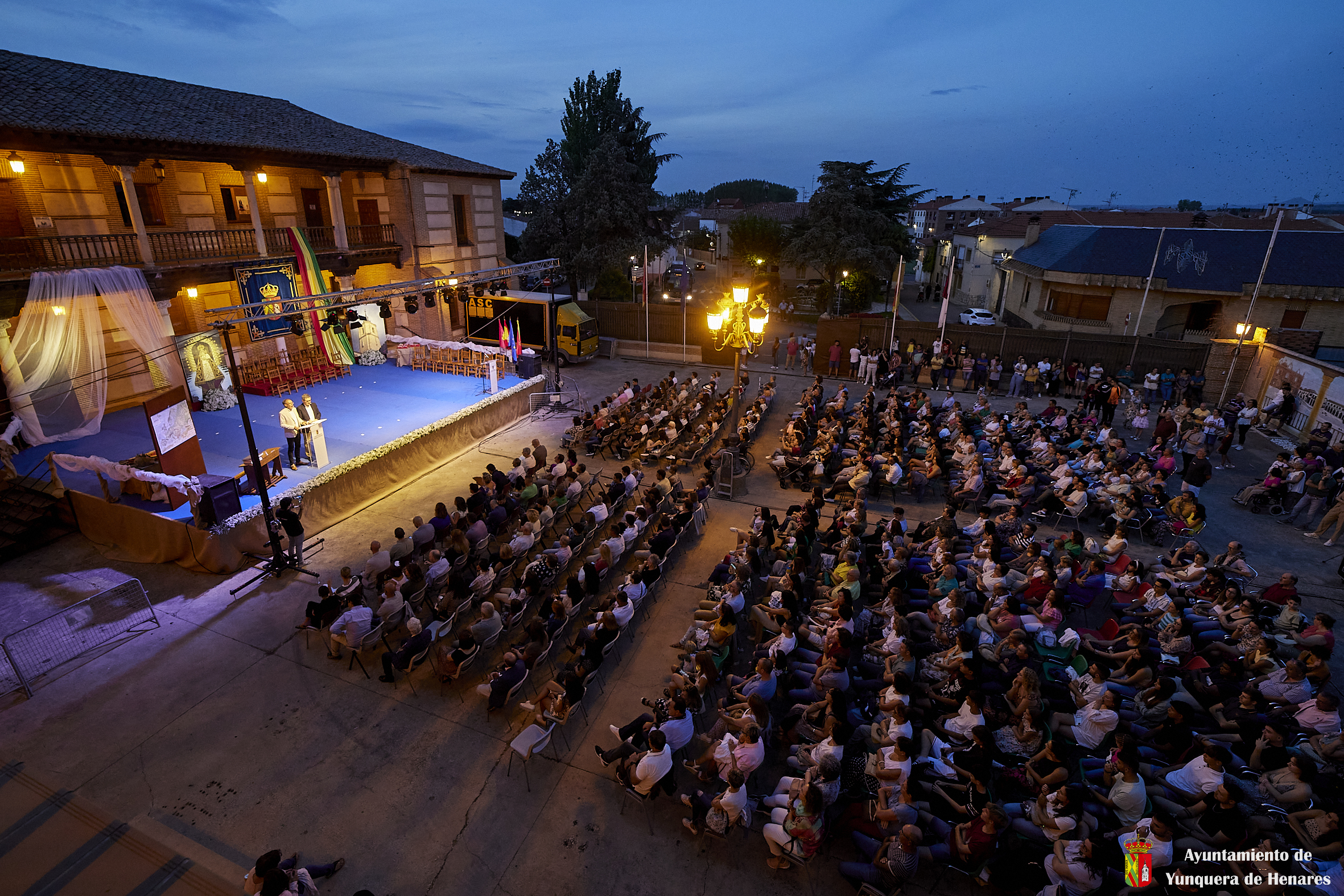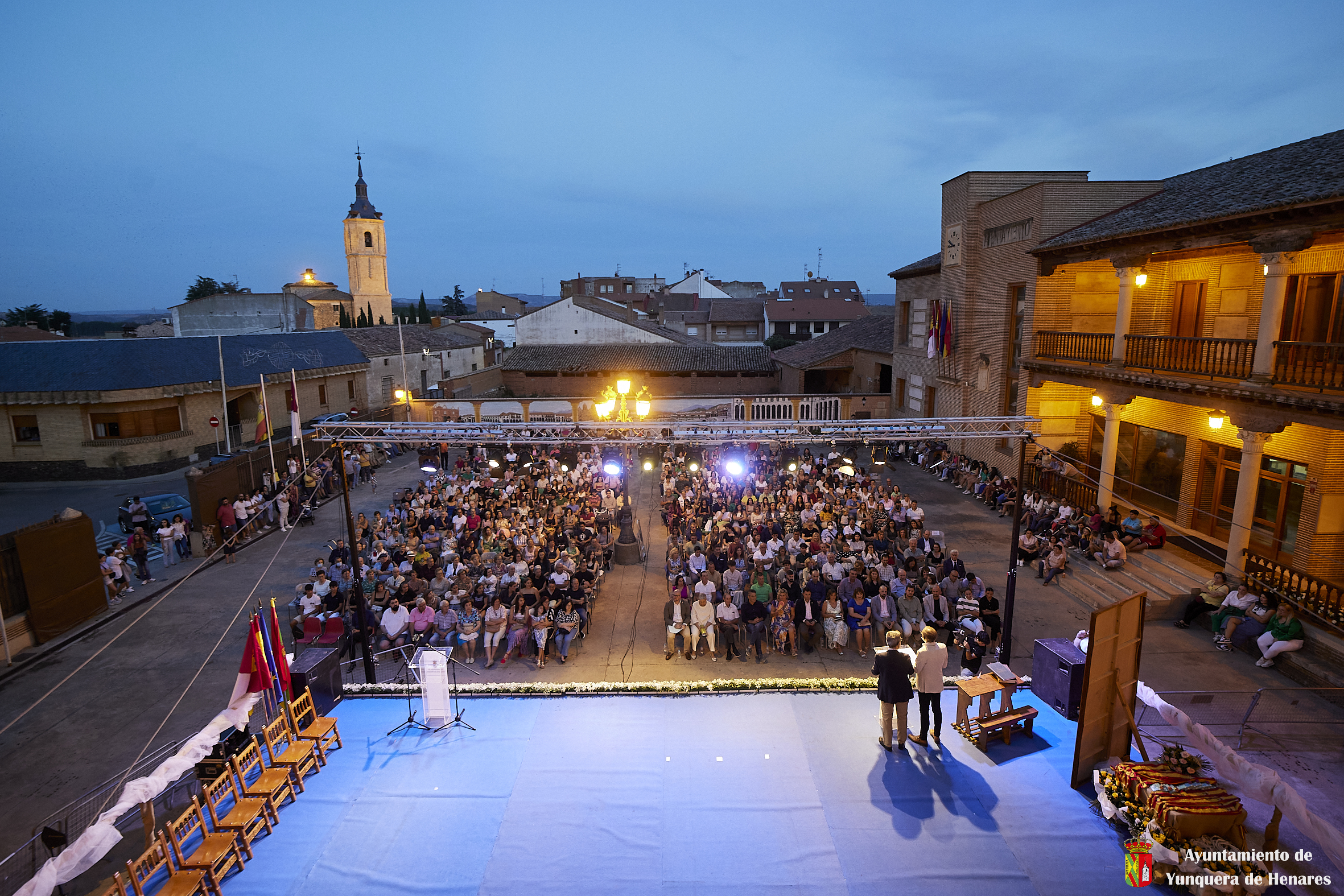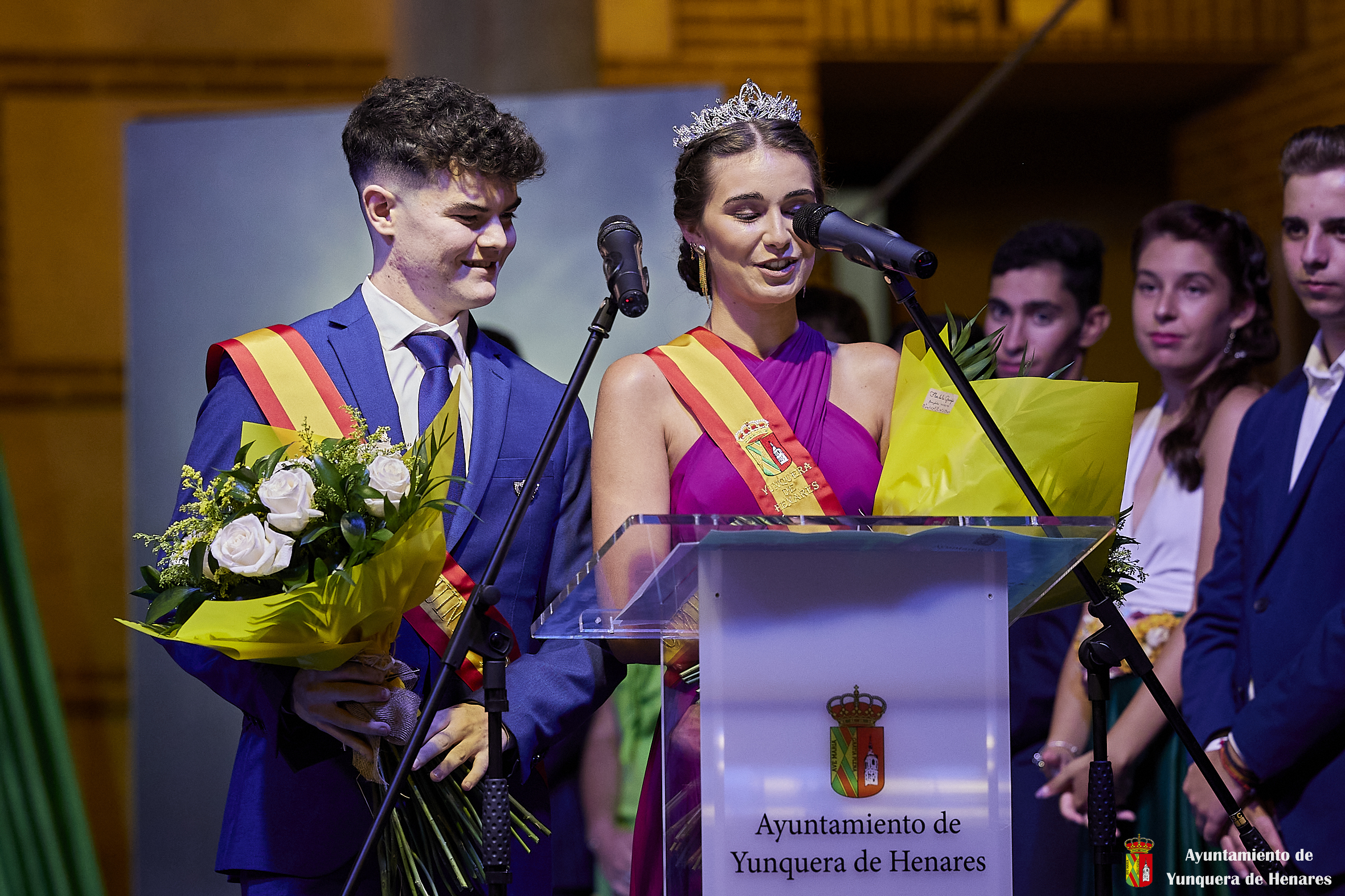 El Palacio de los Mendoza ha vuelto a ser el escenario del inicio de las fiestas patronales de Yunquera de Henares, en honor a la Virgen de la Granja, con el pregón de Carmen Moya y la coronación de los Quintos de Honor de 2023.
