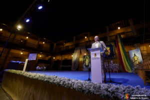 El primero en tomar la palabra fue el alcalde de Yunquera, Lucas Castillo, que puso de manifiesto la importancia de estos días: “Nuestras fiestas son muy esperadas durante el año, tanto que muchas noches hemos soñado sobre ellas “. Además, agregó que nos sirven para “volver a conectar con nuestros orígenes, en el que nuestro pueblo volverá a acoger a quienes un día sintieron y amaron nuestras calles”. Por su parte el párroco, José Benito Sánchez, animó a los asistentes a visitar la Iglesia de San Pedro para ver la restauración del cuadro de la Virgen de la Granja y también pidió que “vivamos las fiestas con devoción”.