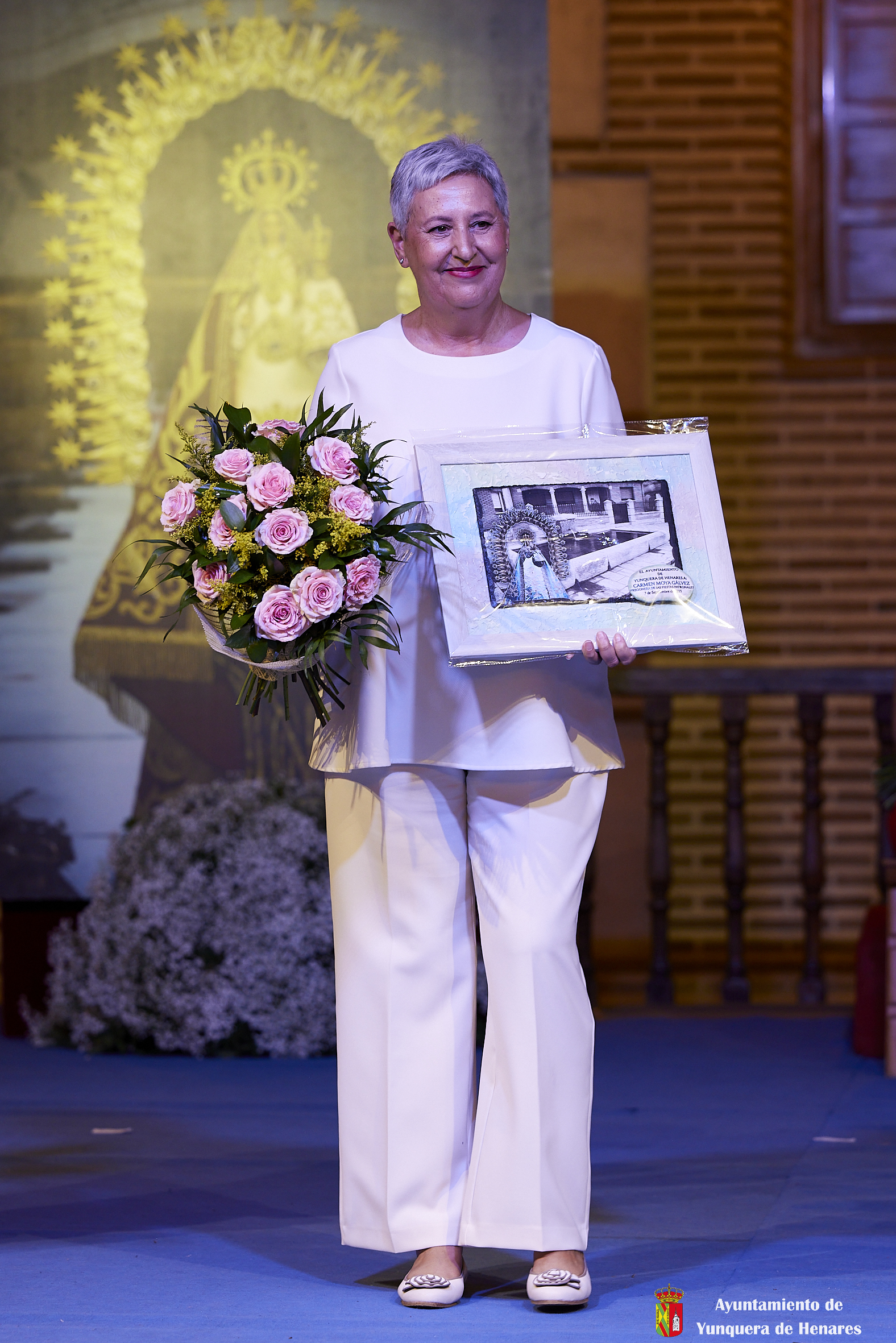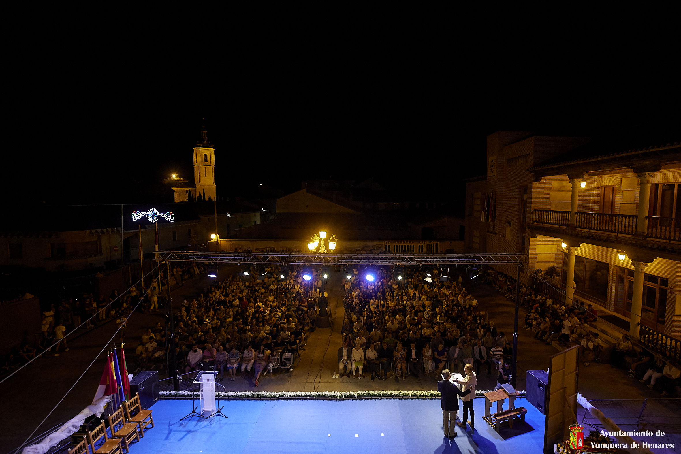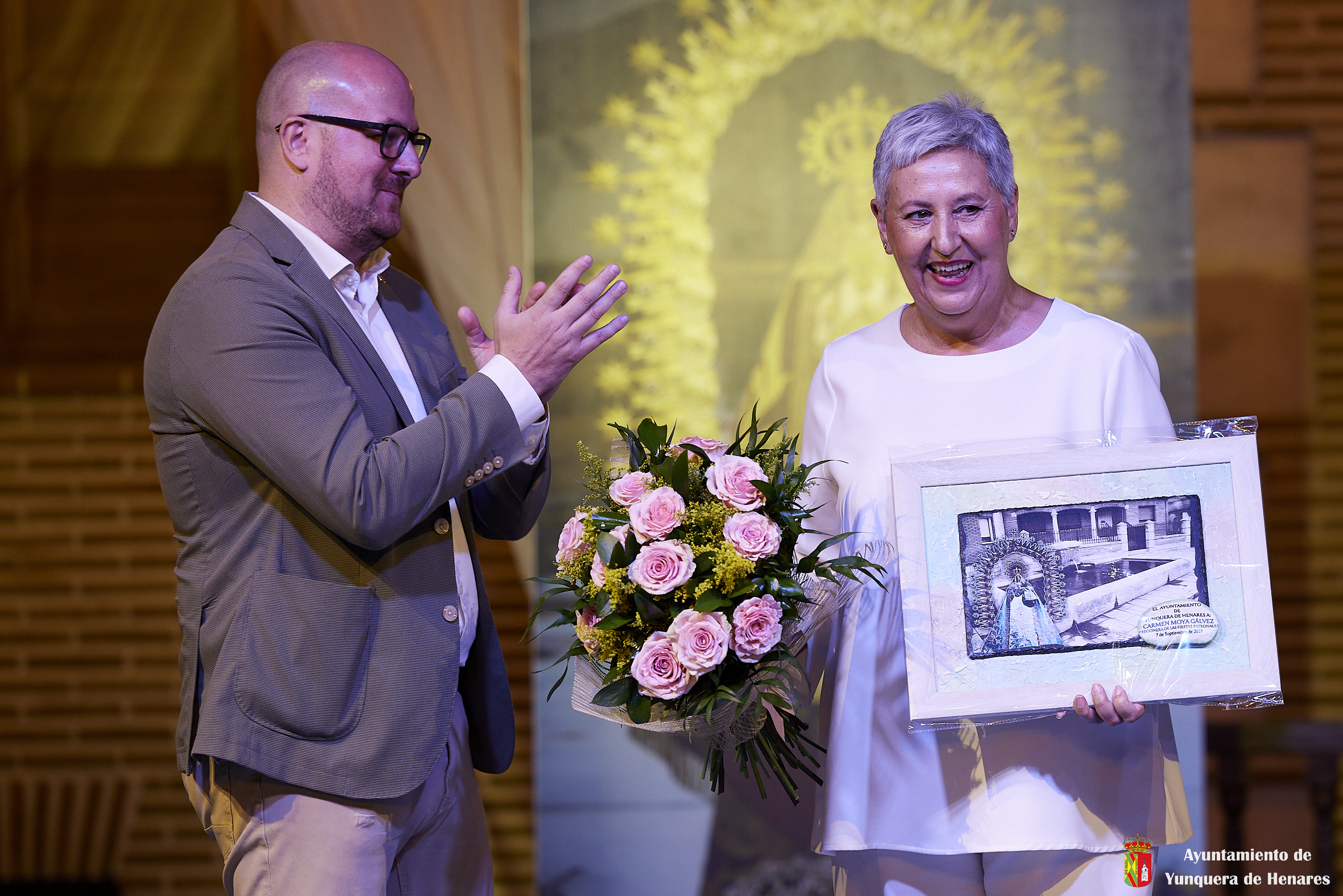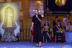 Para finalizar, Guillermo y Cata llamaron al escenario a la futbolista, Sheila García, que se ha perdido el Mundial por lesión, pero que de esta manera recibía el apoyo y el cariño de todos los yunqueranos. Tanto Sheila como todos los intervinientes que pasaron por el escenario entonaron el clásico: “¡Viva Yunquera!” y “¡Viva la Virgen de La Granja!”.