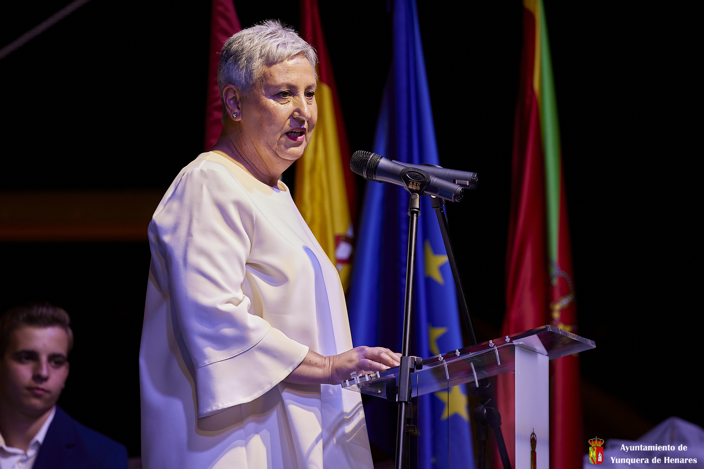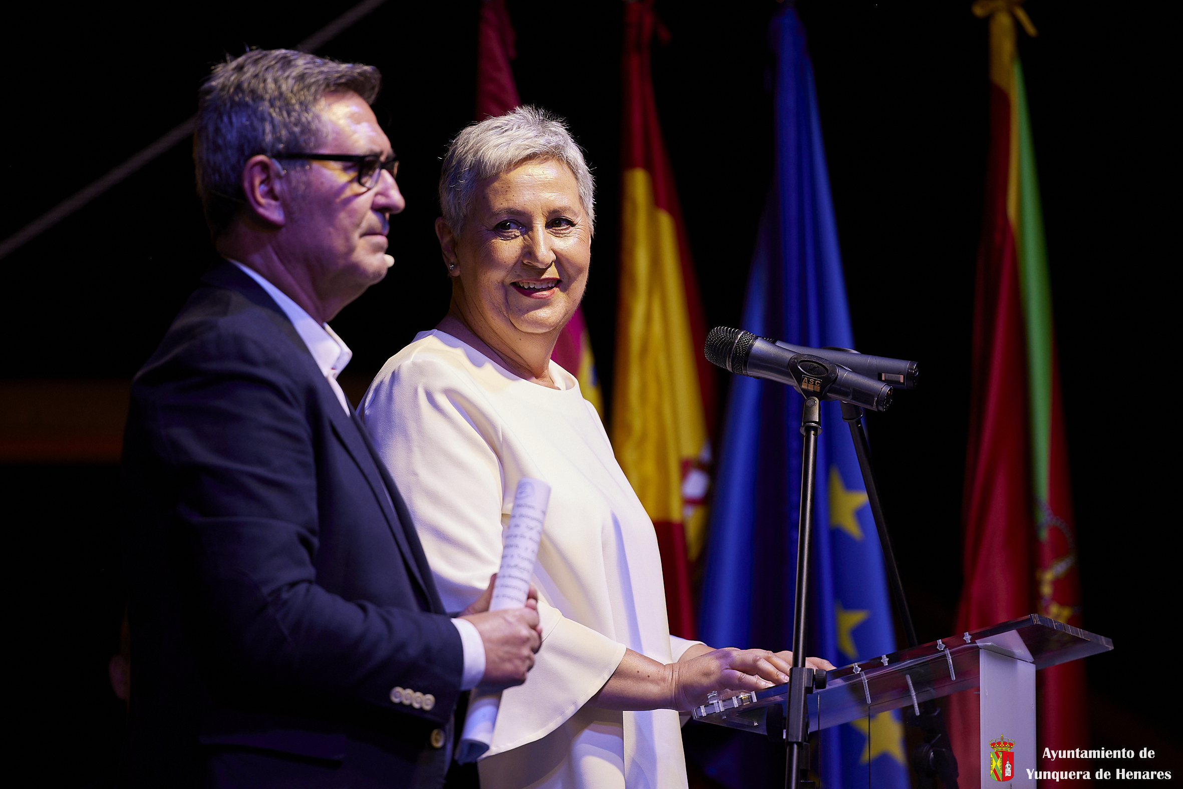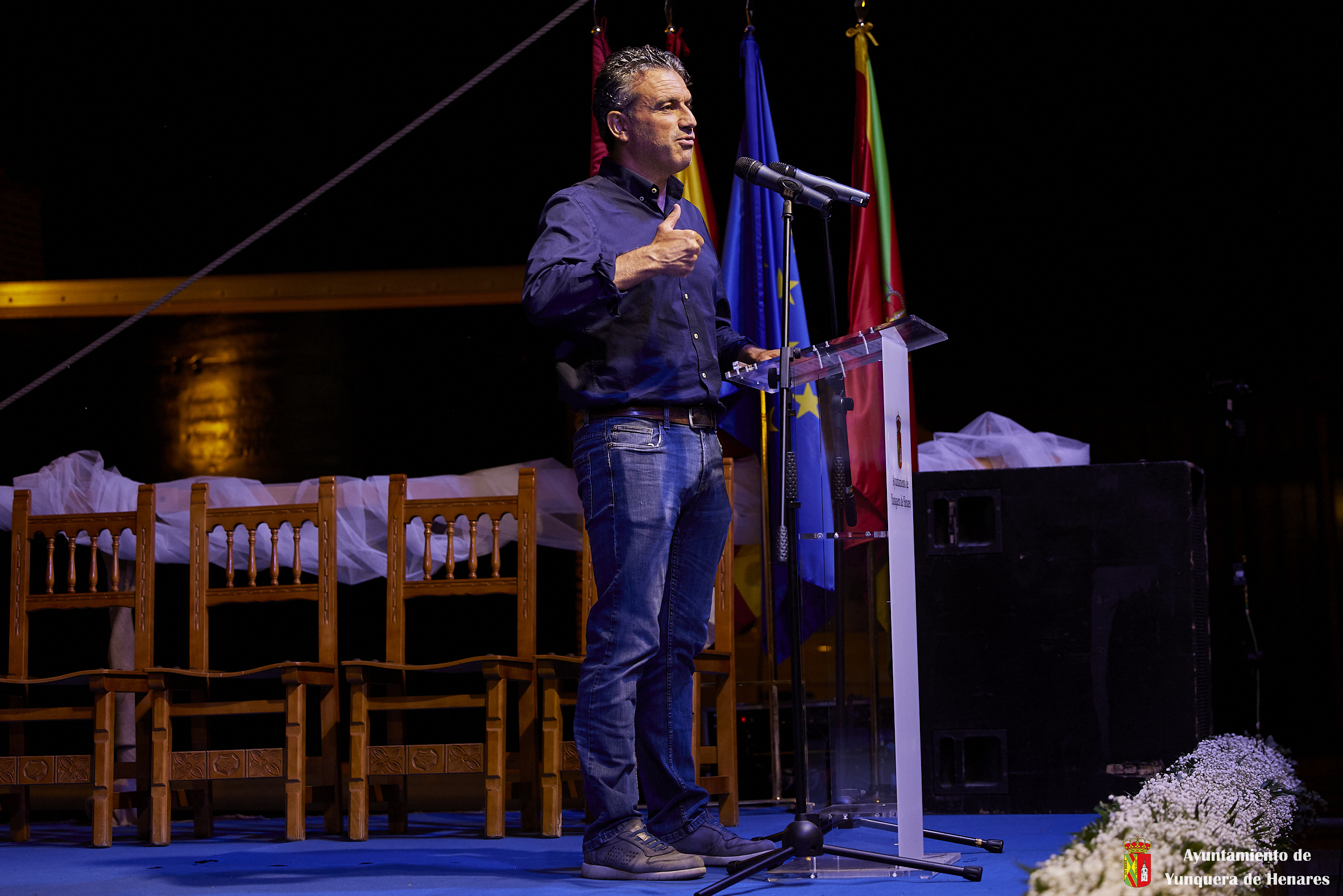 Para finalizar, Guillermo y Cata llamaron al escenario a la futbolista, Sheila García, que se ha perdido el Mundial por lesión, pero que de esta manera recibía el apoyo y el cariño de todos los yunqueranos. Tanto Sheila como todos los intervinientes que pasaron por el escenario entonaron el clásico: “¡Viva Yunquera!” y “¡Viva la Virgen de La Granja!”.