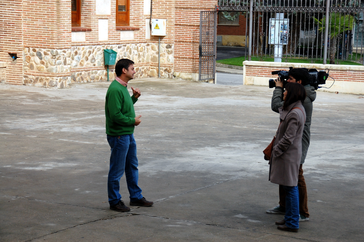 Instántanea de la grabación de los reportajes sobre la historia del Palacio de los Mendoza