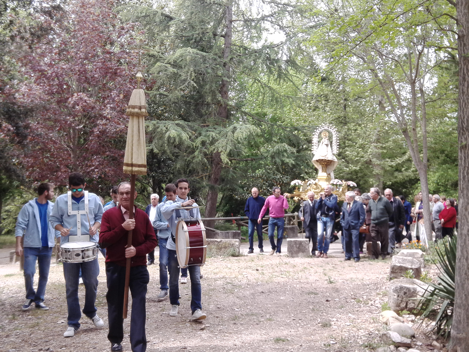 A la finalización de la ceremonia por el camino habitual tuvo lugar la procesión con la imagen de la Virgen, portada por las autoridades de Heras y de Yunquera,  este año acompañada por los acordes de la agrupación musical yuqnuerana Q95. Posteriormente se celebró a la subasta de andas, obsequios y flores. La salve y el himno a Nuestra Señora de la Granja puso punto final al acto religioso